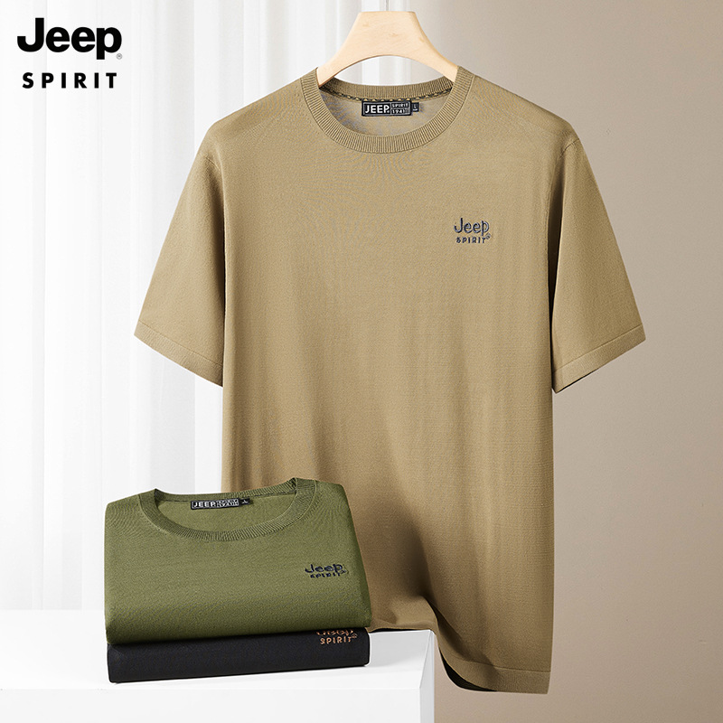 JEEP SPIRIT夏季新款冰丝密斯特T恤薄款柔软透气耐磨休闲简约男士短袖JP-6635