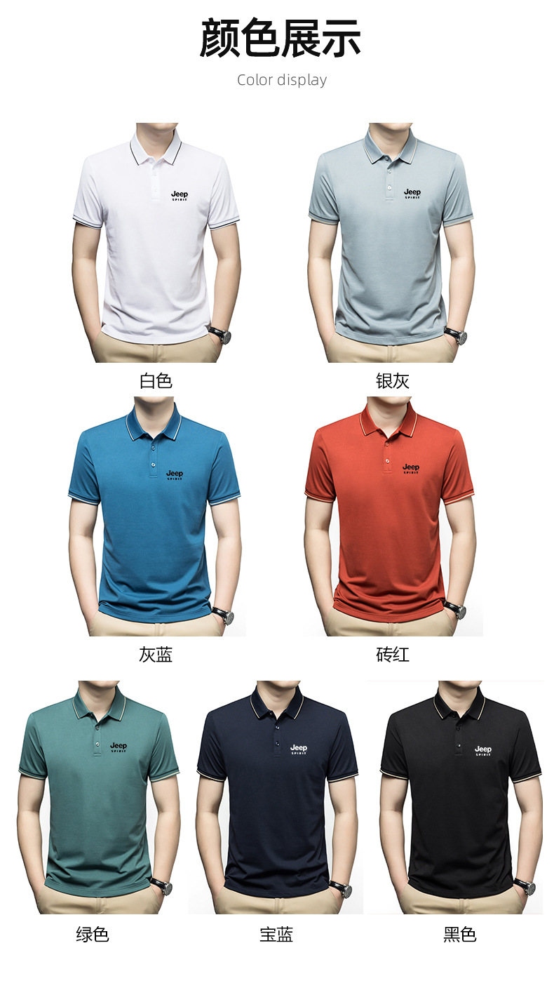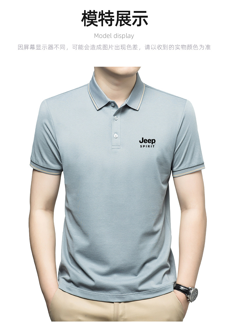 JEEP SPIRIT夏季新款男式休闲翻领T恤透气排汗柔软亲肤透气清爽速干冰丝JP6662