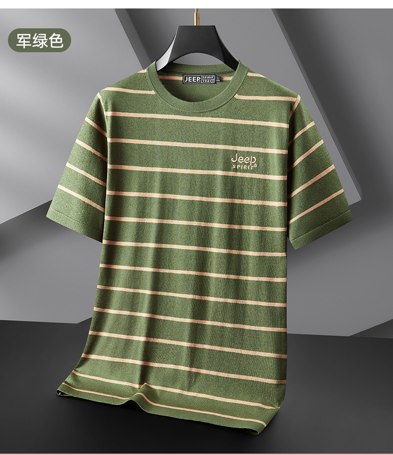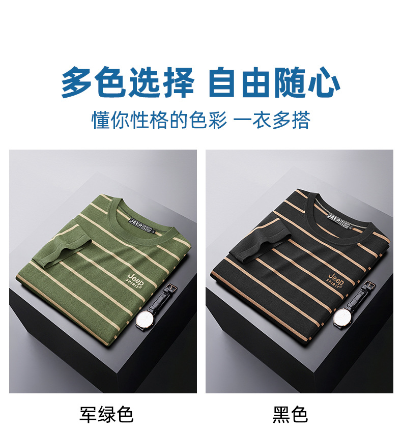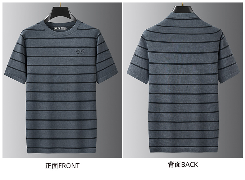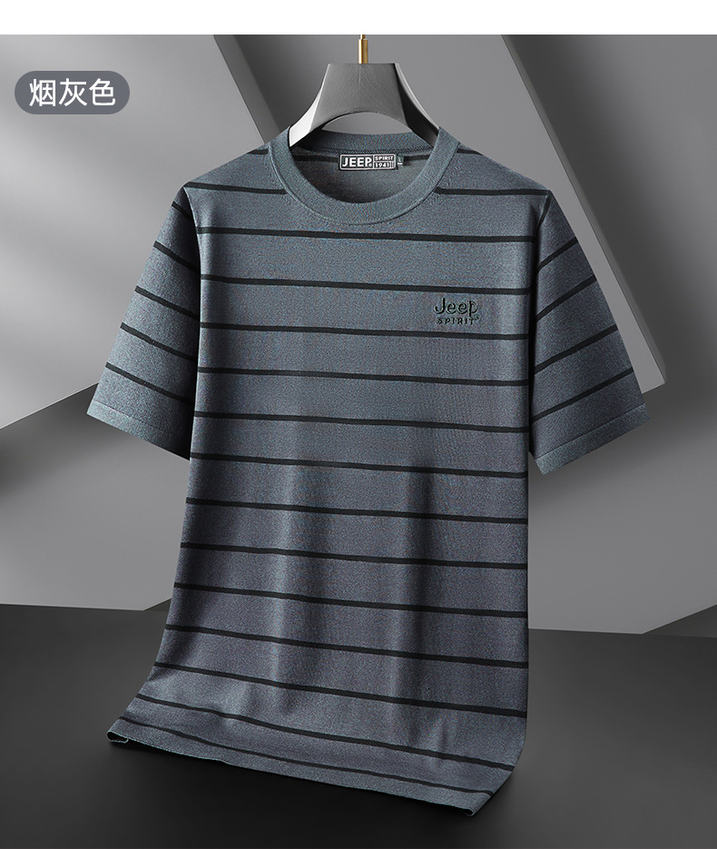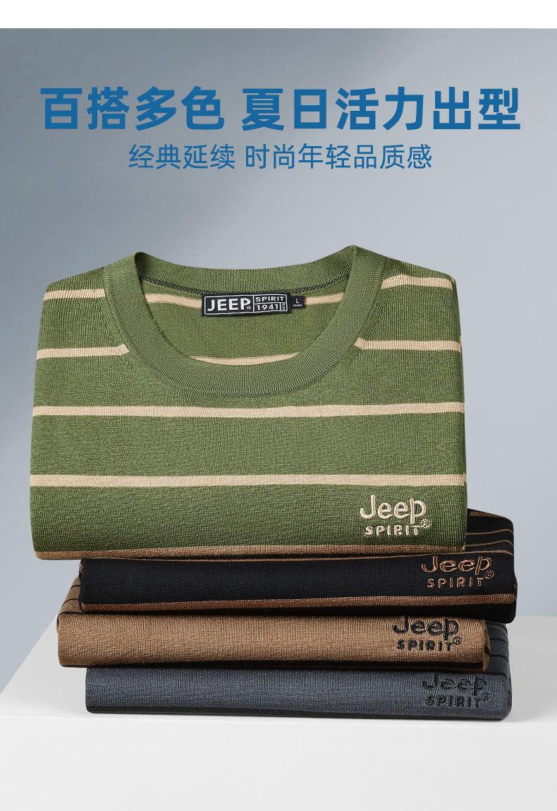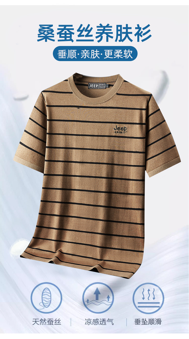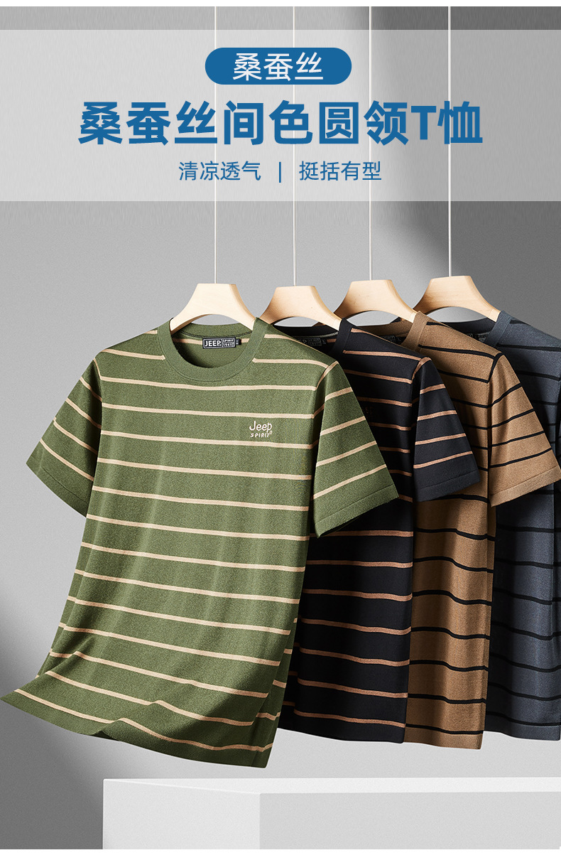 JEEP SPIRIT夏季新款桑蚕丝间色圆领短T恤干爽透气柔软亲肤吸湿速干休闲HY-TS68022
