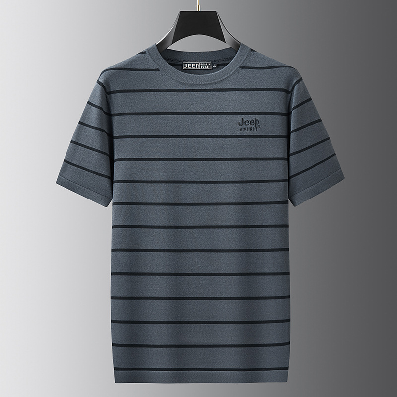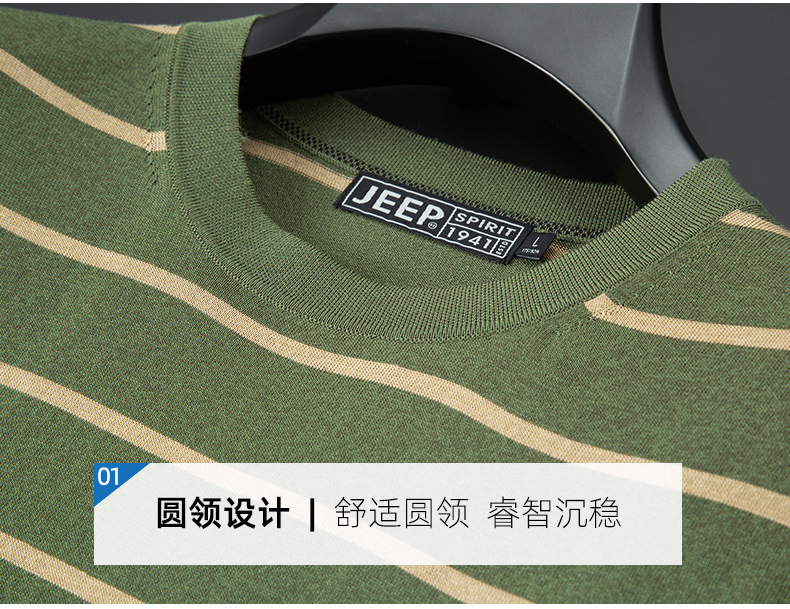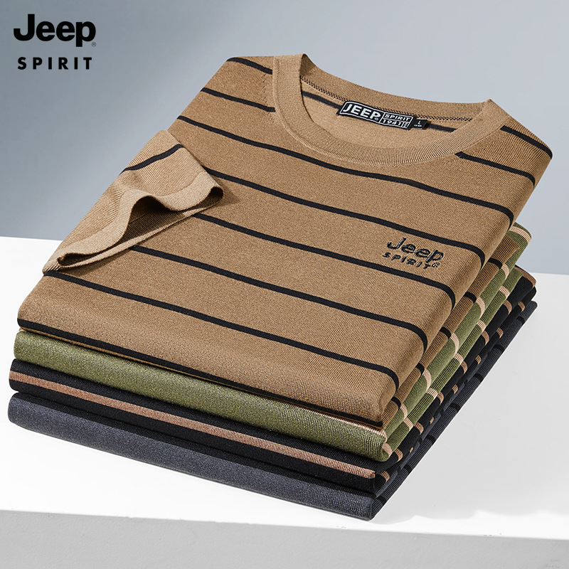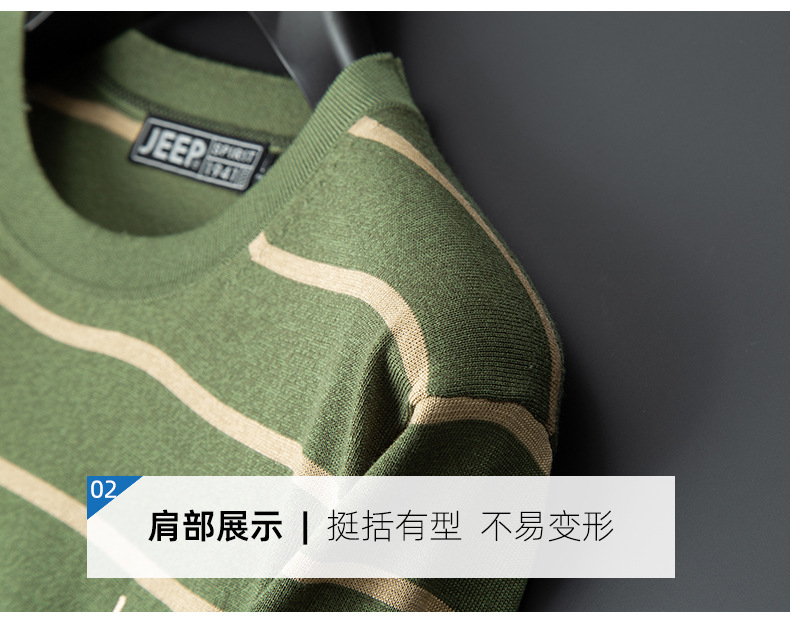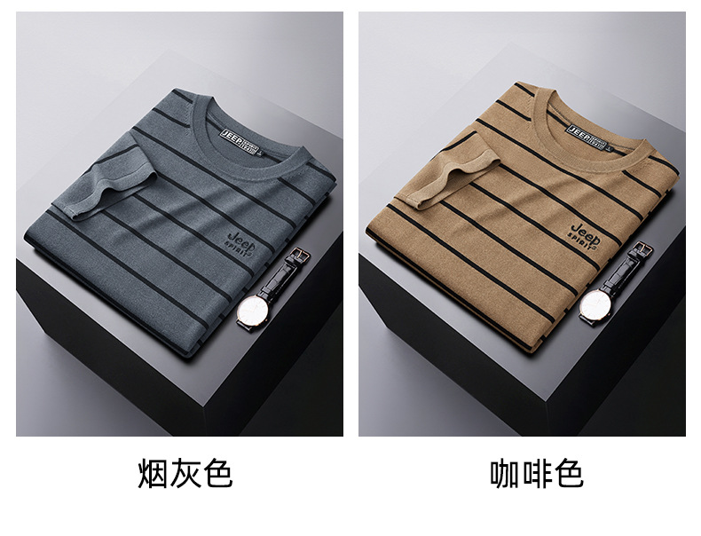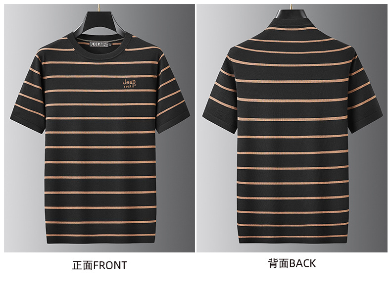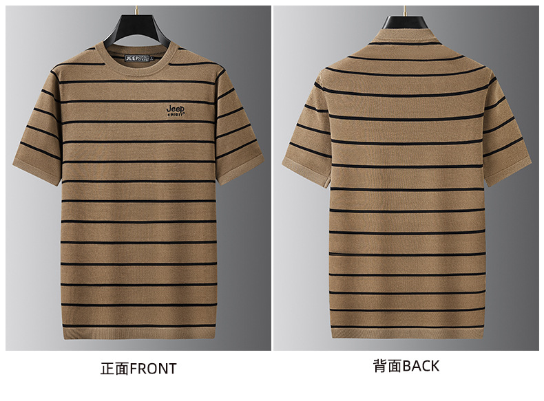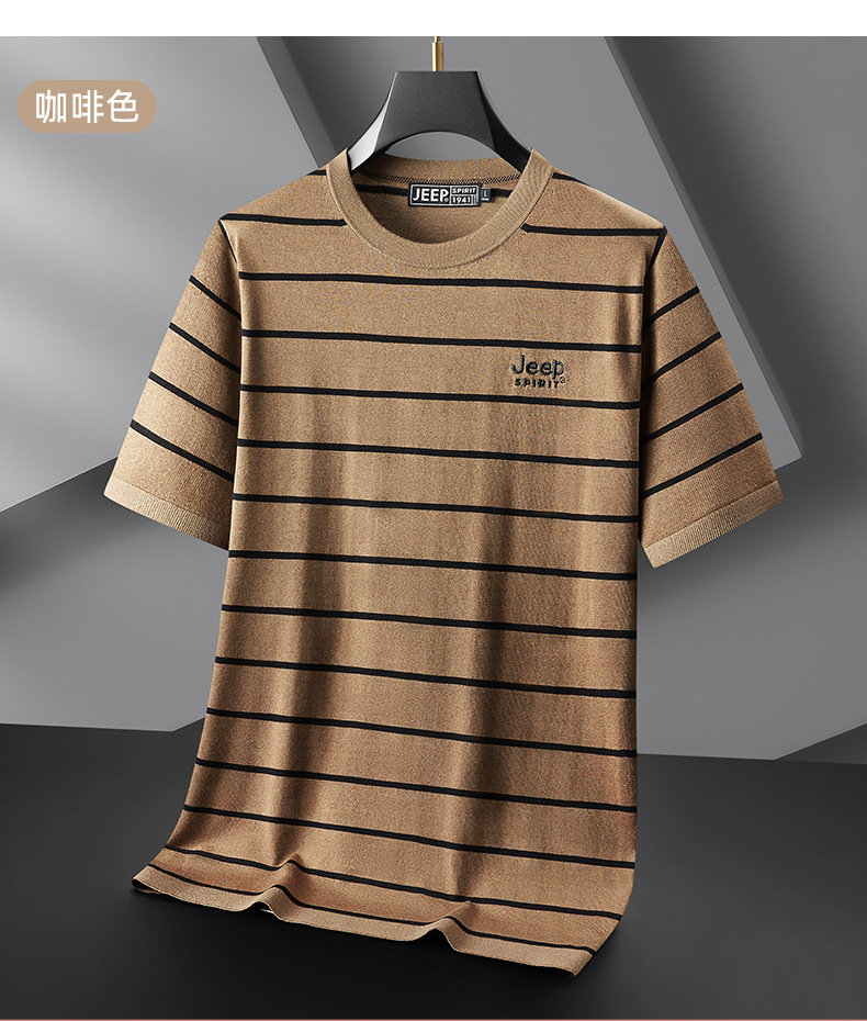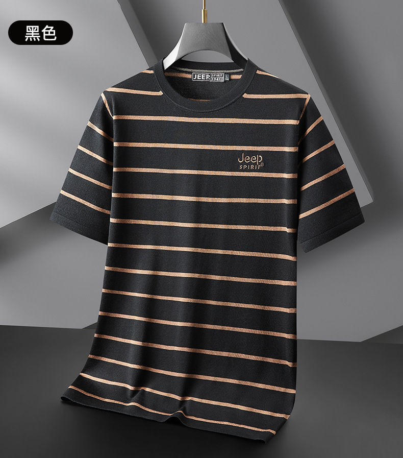 JEEP SPIRIT夏季新款桑蚕丝间色圆领短T恤干爽透气柔软亲肤吸湿速干休闲HY-TS68022
