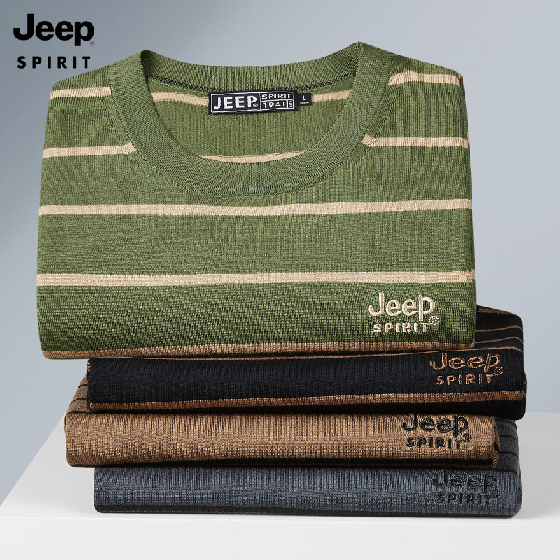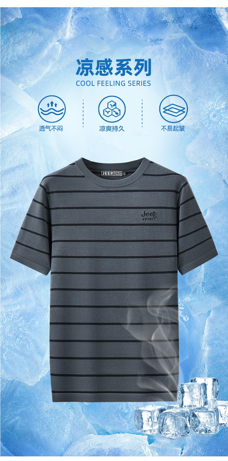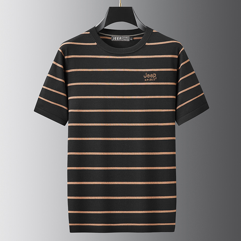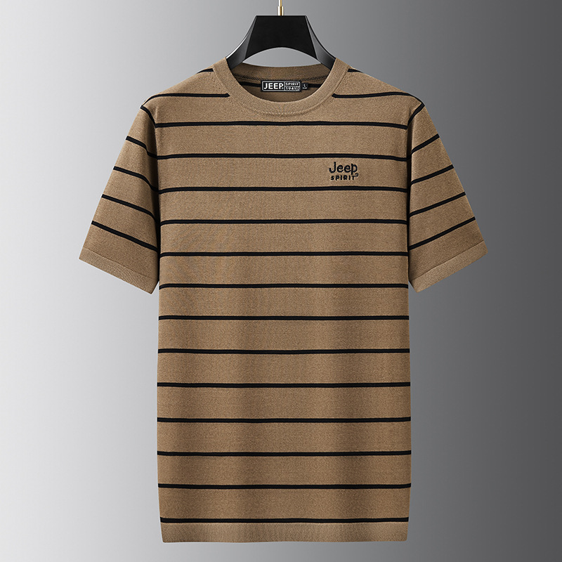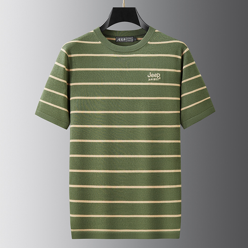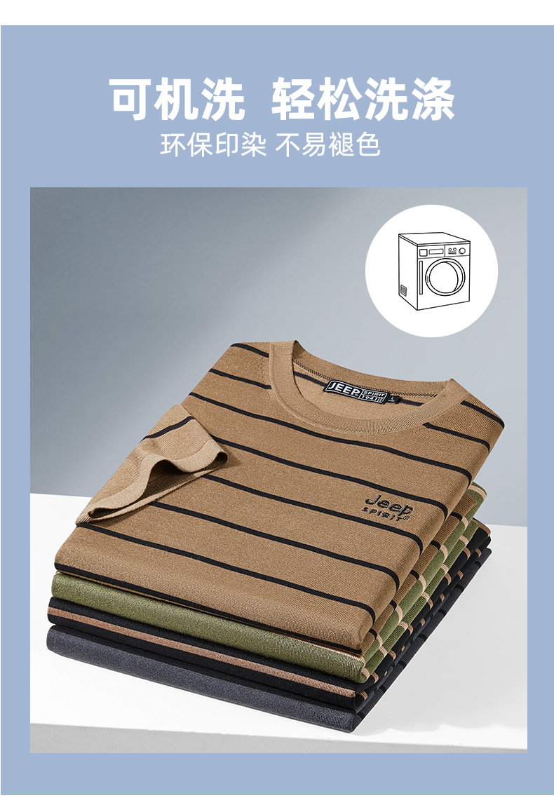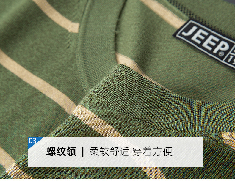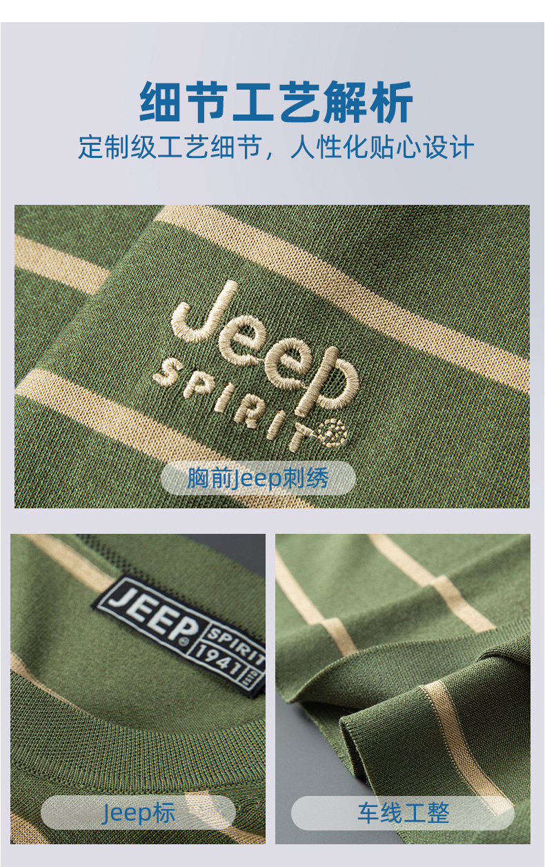 JEEP SPIRIT夏季新款桑蚕丝间色圆领短T恤干爽透气柔软亲肤吸湿速干休闲HY-TS68022