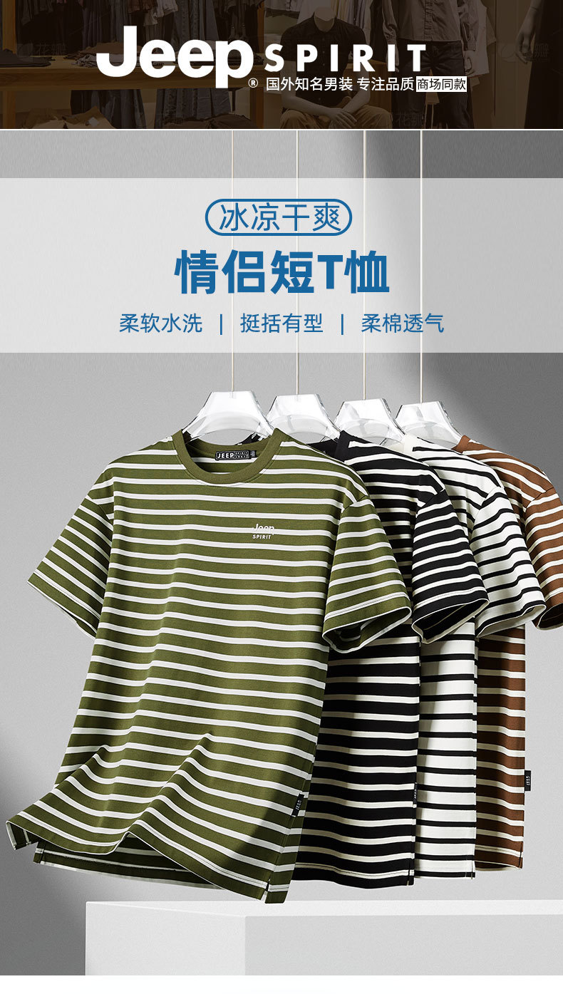 JEEP SPIRIT夏季新款男女款舒适短T恤干爽透气柔软亲肤休闲百搭吸湿速干HY-TS68005
