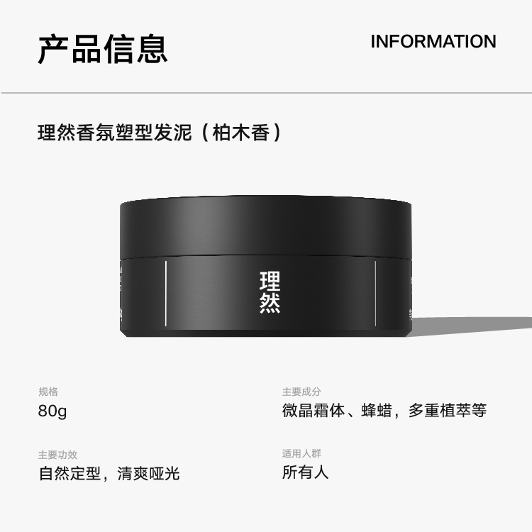 理然发泥自然哑光持久造型蓬松哑光塑型啫喱碎发整理木质香发泥80g