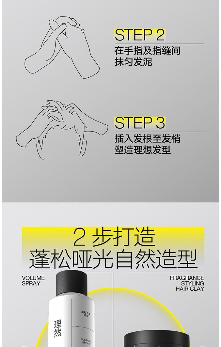 理然男士造型发胶定型喷雾塑型发泥套装 哑光蓬松持久定型造型喷雾(木质香)250ml+发泥(柏木香80g)