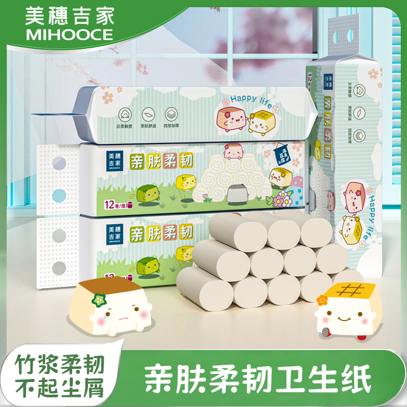 美穗吉家 本色竹浆卷纸 4层加厚 70g/卷*12卷*1提