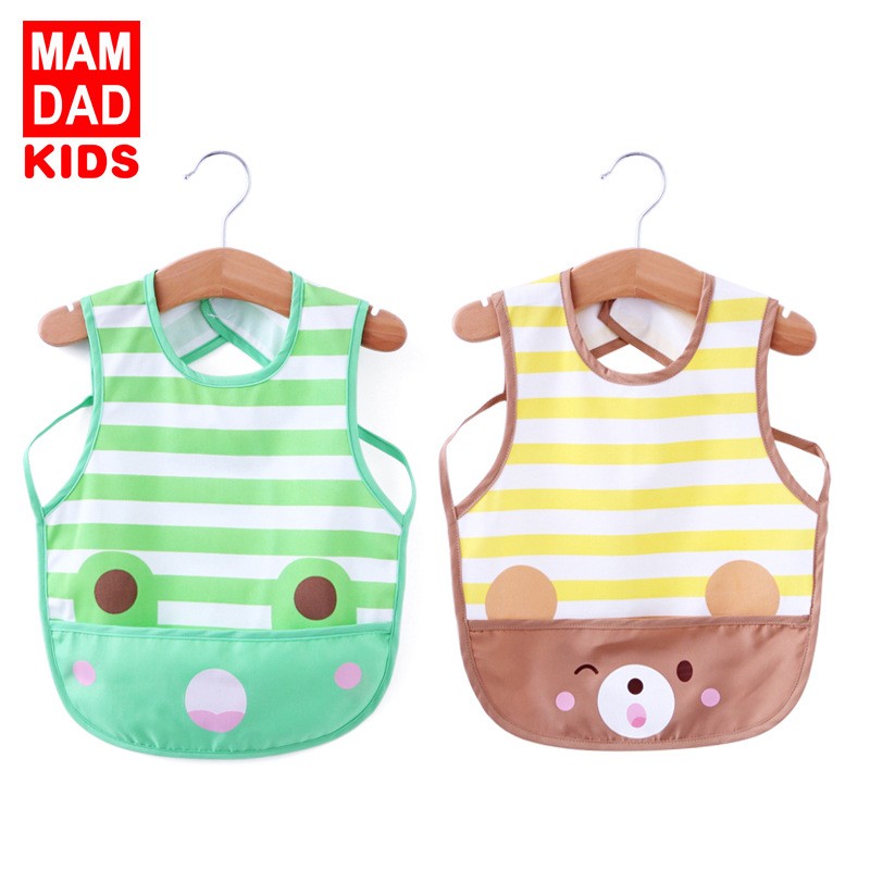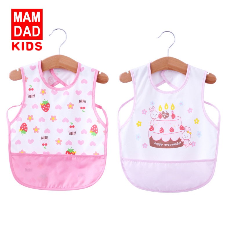 KIDS MAM&DAD 爸妈亲罩衣儿童防水宝宝吃饭饭兜两件装可爱卡通组合婴幼儿口水巾反穿衣86600