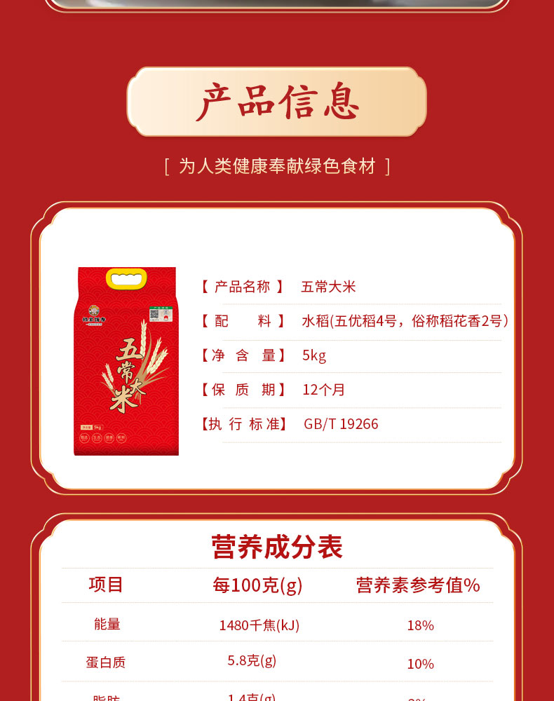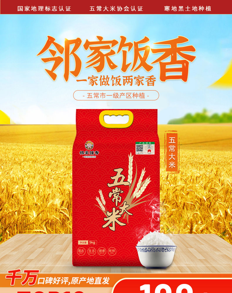邻家饭香 一级五常大米 5kg/袋 真空双层包装 LJFX133