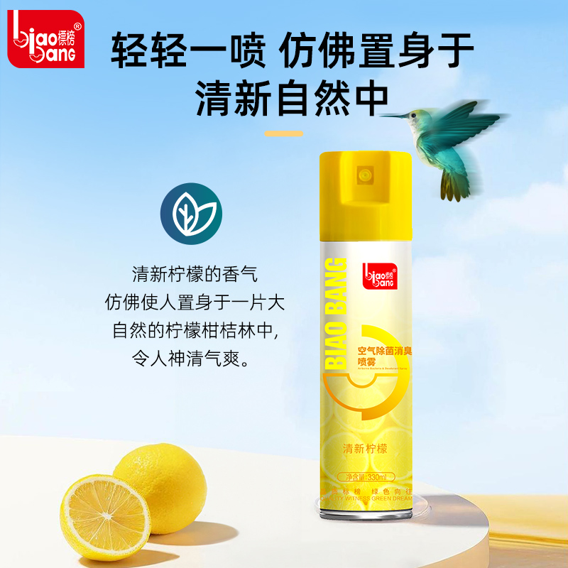 标榜空气除菌消臭喷雾剂330ml(清新柠檬)*3支(送毛巾+海绵)