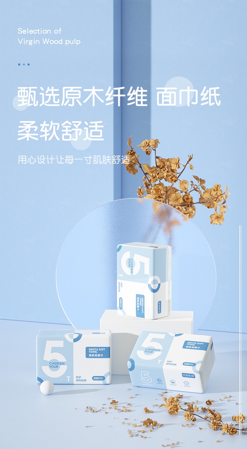 艾逸瑶选原生木浆蓝色梦想300张6包软纸抽AYYX018-6