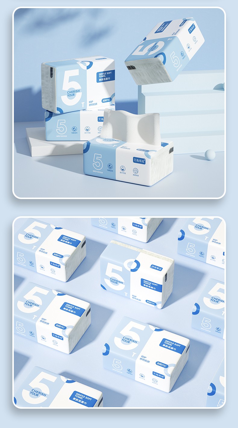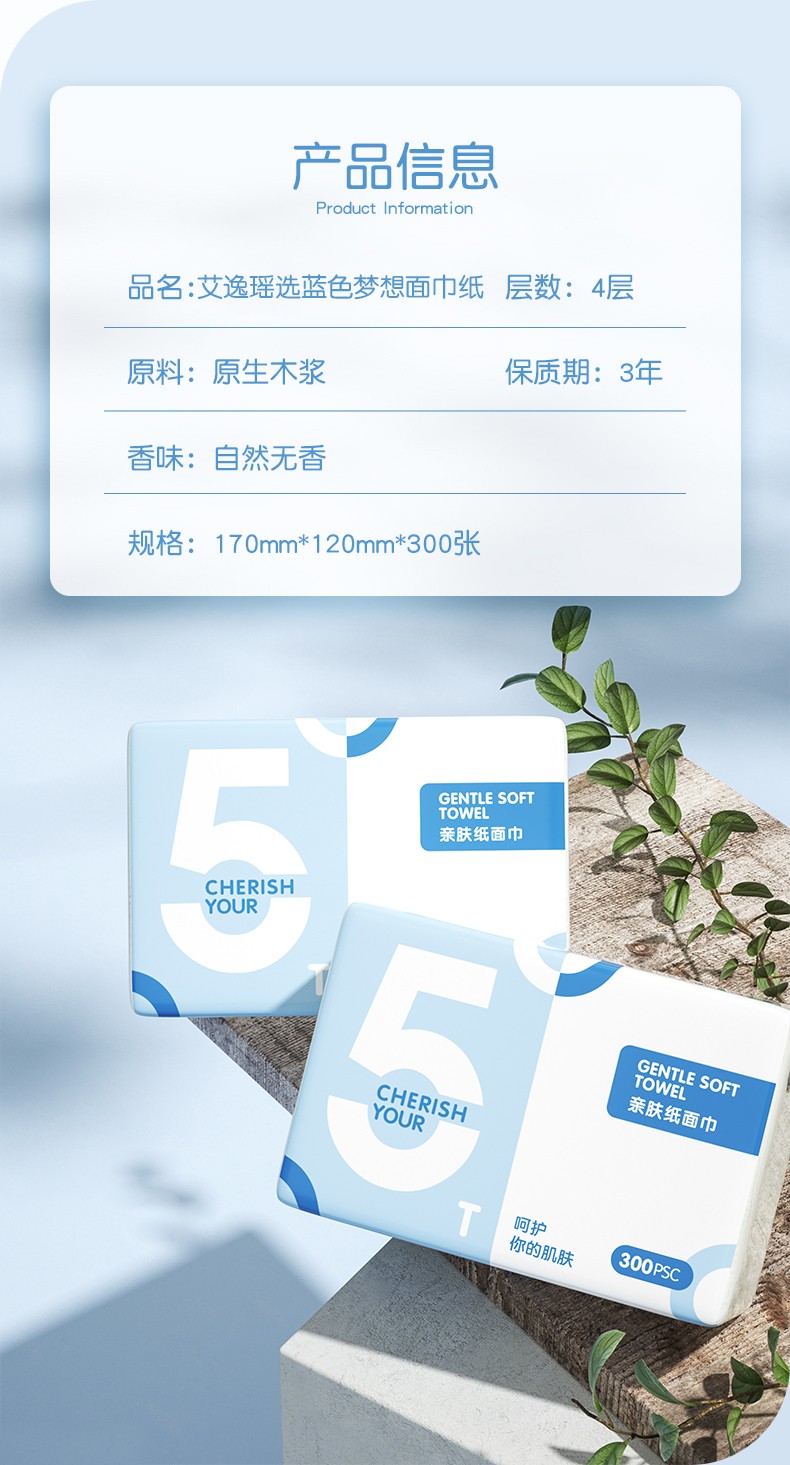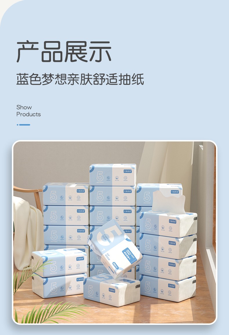 艾逸瑶选原生木浆蓝色梦想300张8包软纸抽AYYX018-8