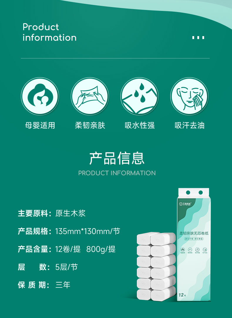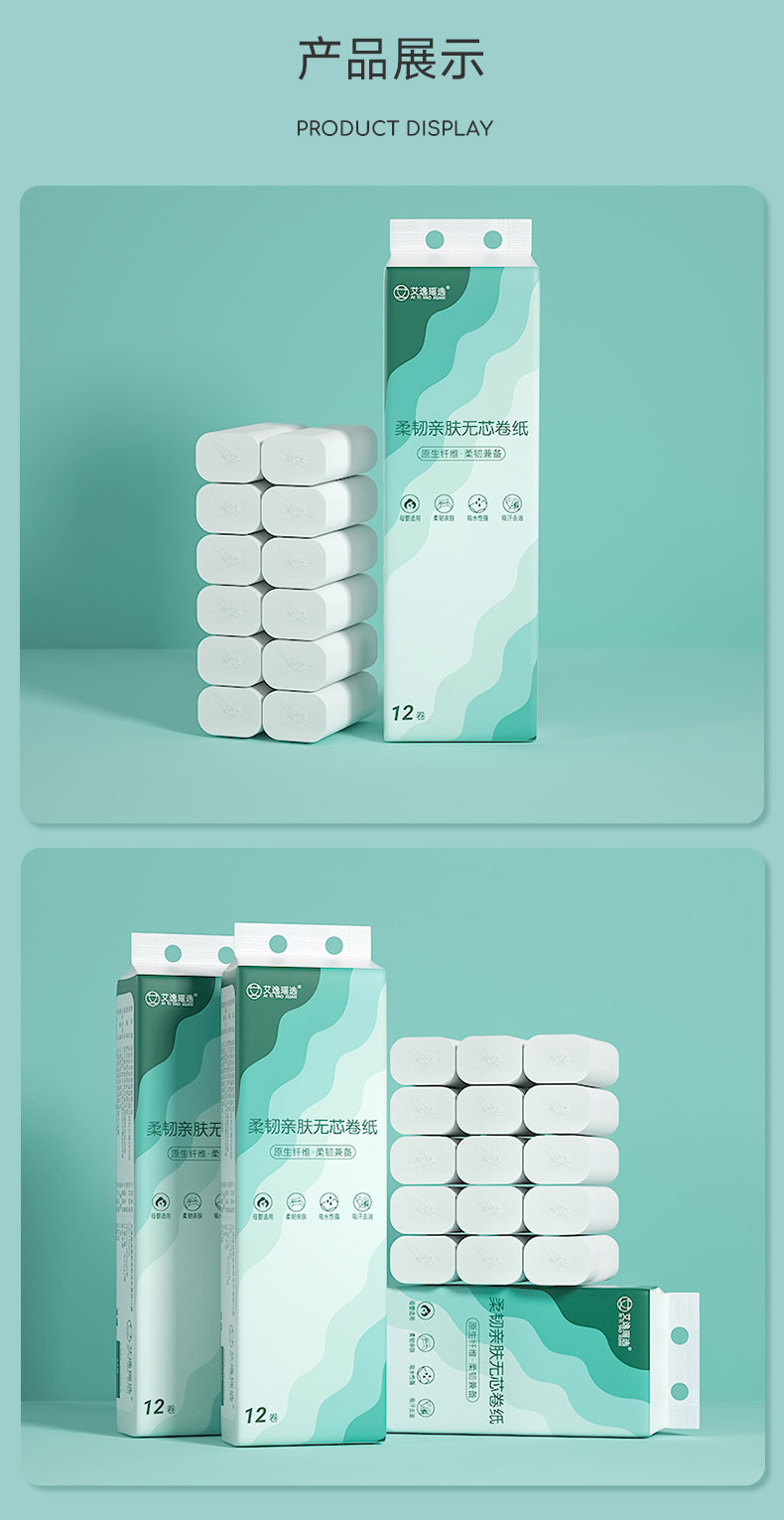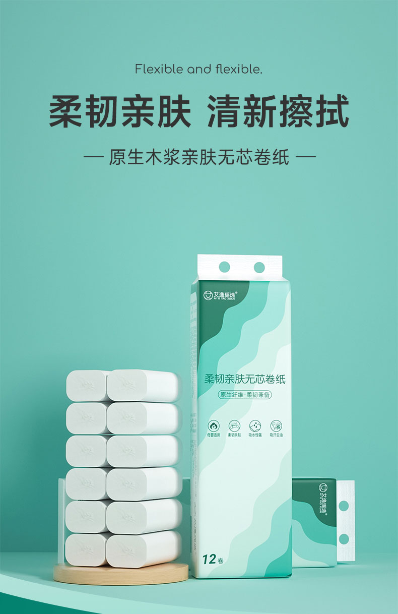 艾逸瑶选柔韧亲肤无芯卷纸36卷2400克 AYYX800-36