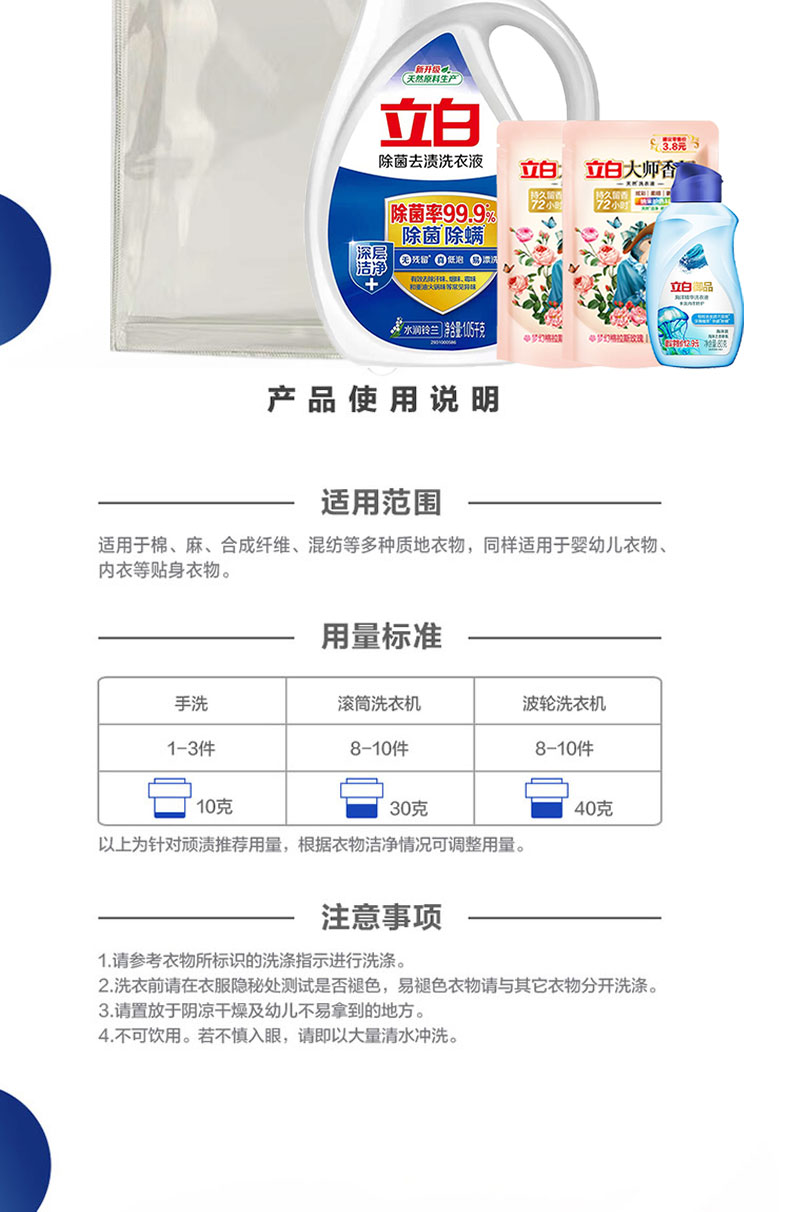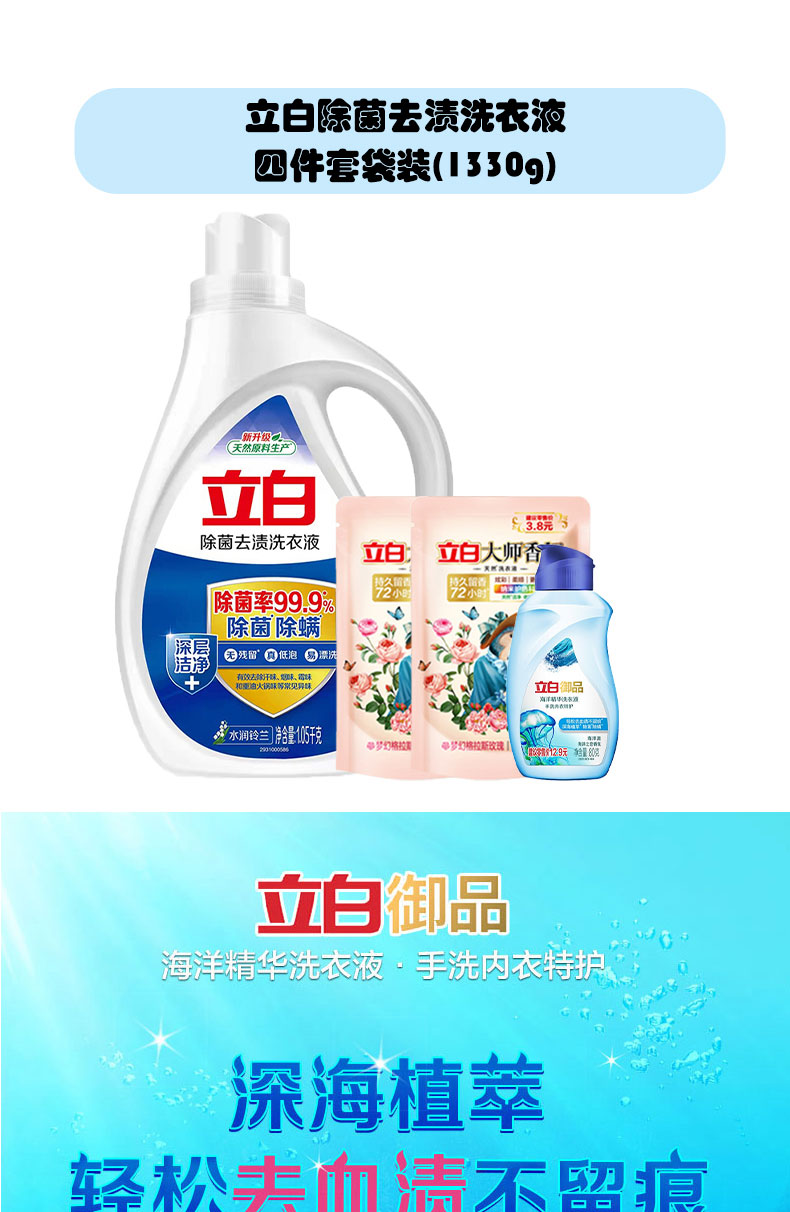 立白除菌去渍洗衣液四件套袋装(1330g)