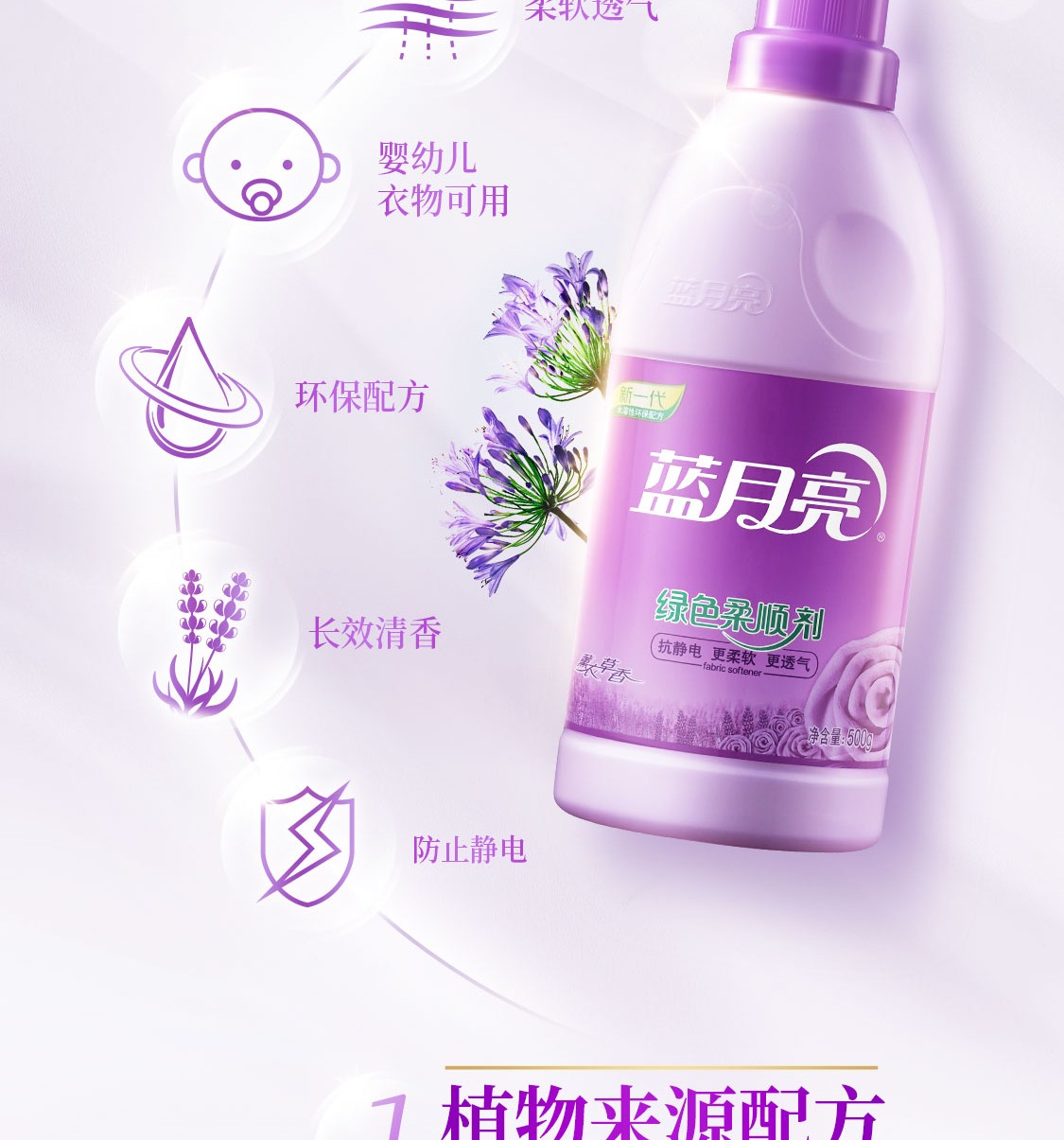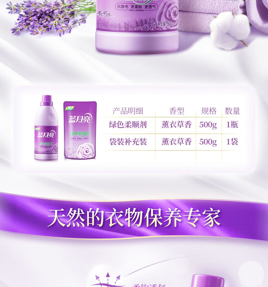 蓝月亮薰衣草绿色柔顺剂袋装500g*3包