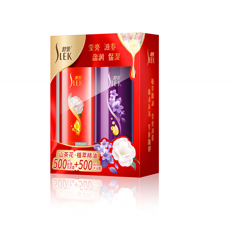 舒蕾山茶花植萃精油套装:500ml祛屑洗发水+500ml沐浴露