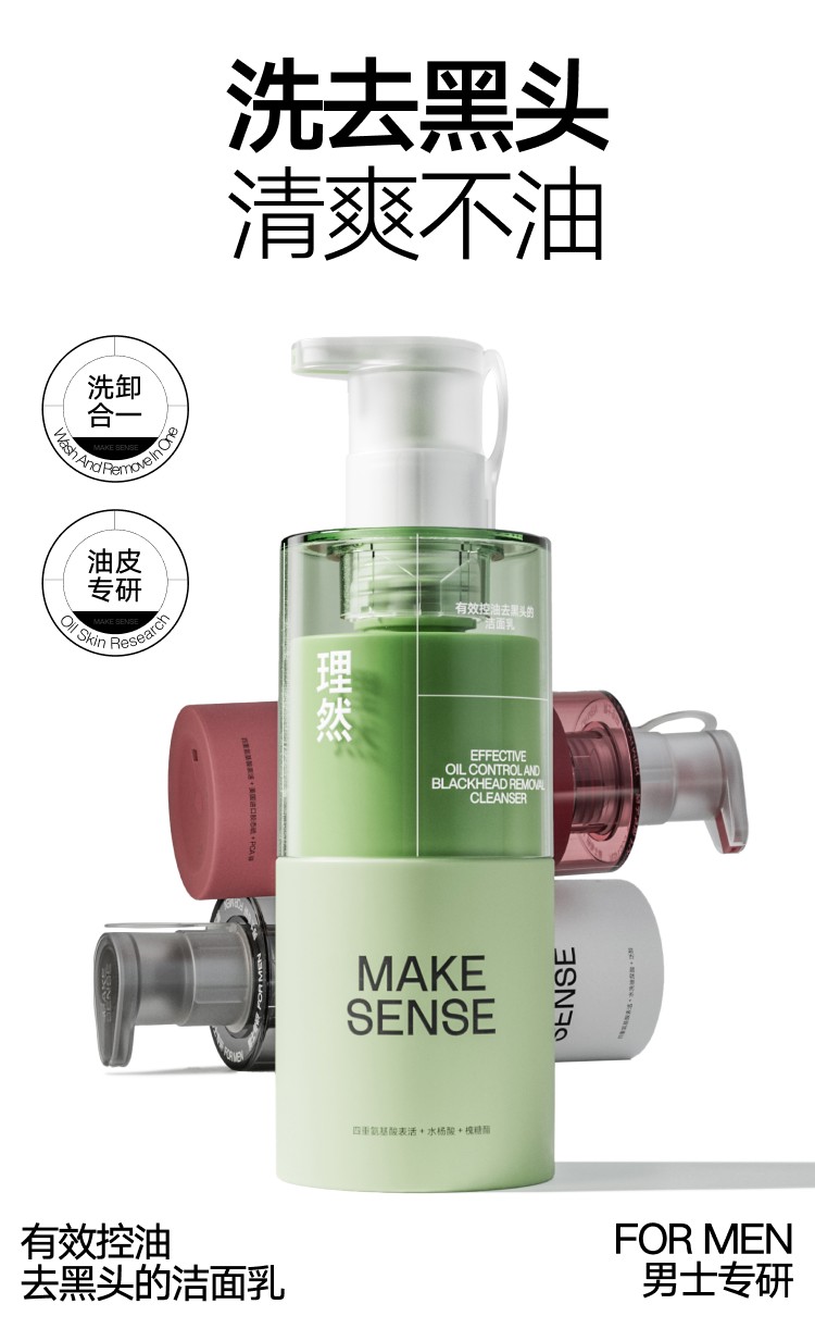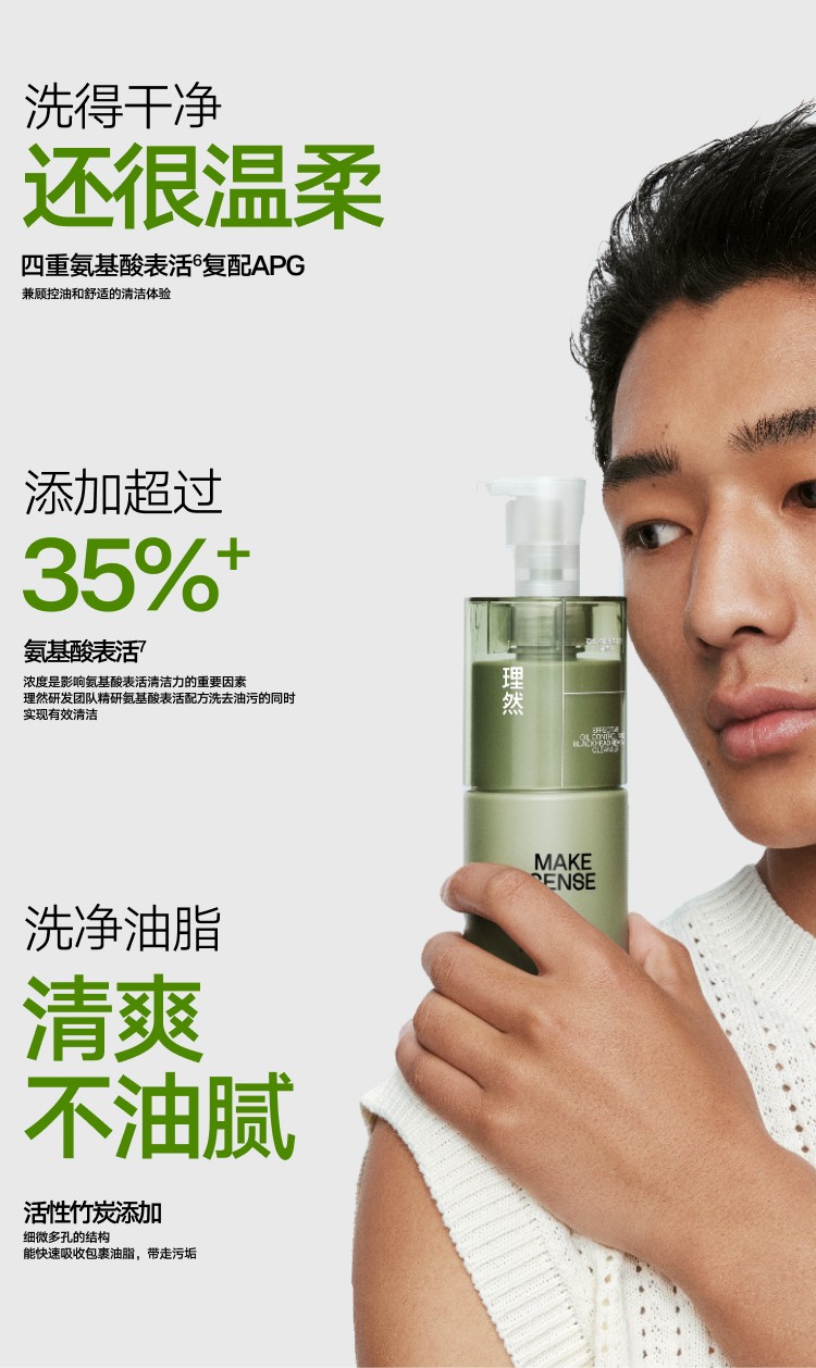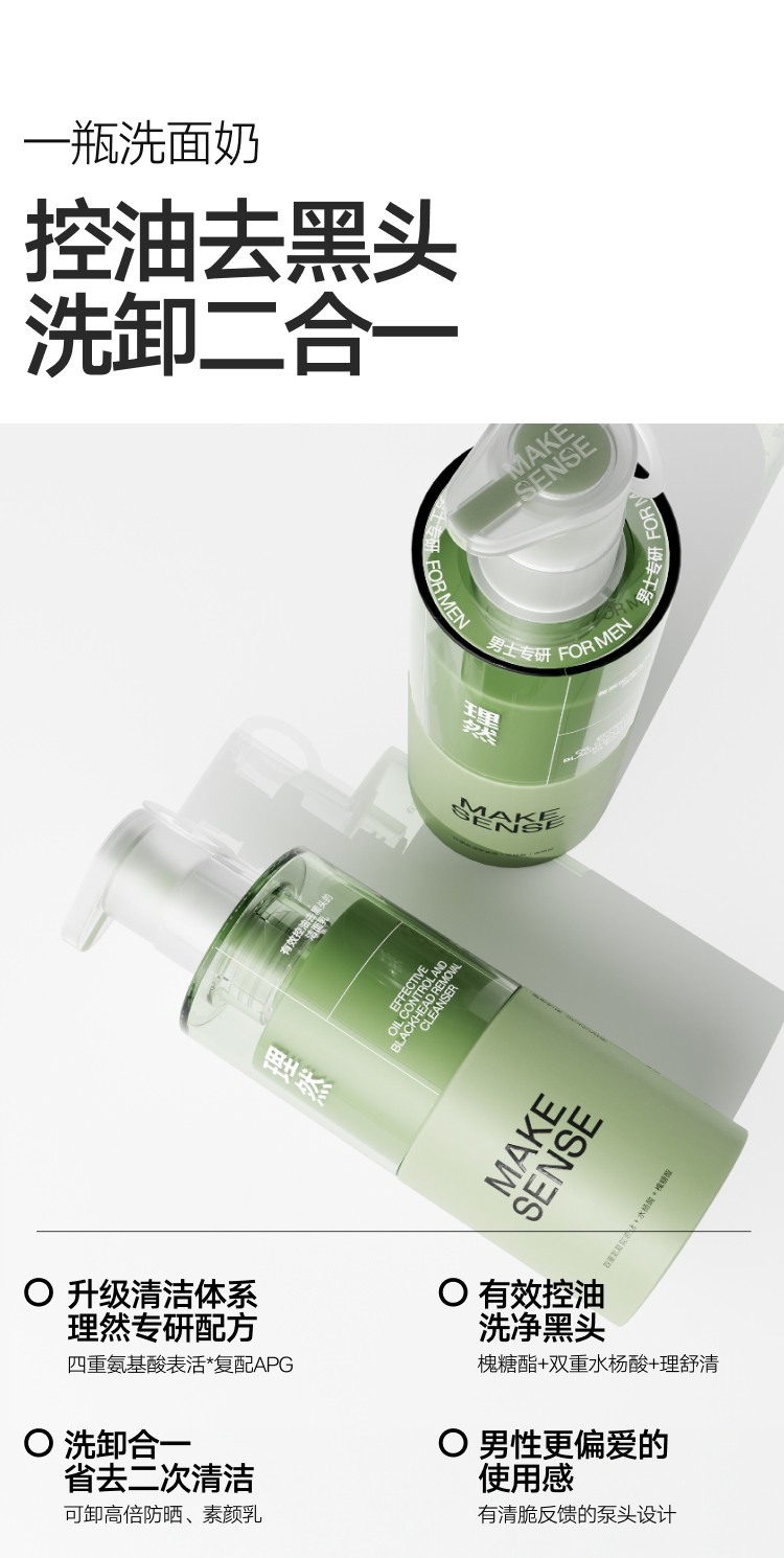 理然男士控油氨基酸洗面奶精华2件套 去油保湿补水油皮男士护肤品