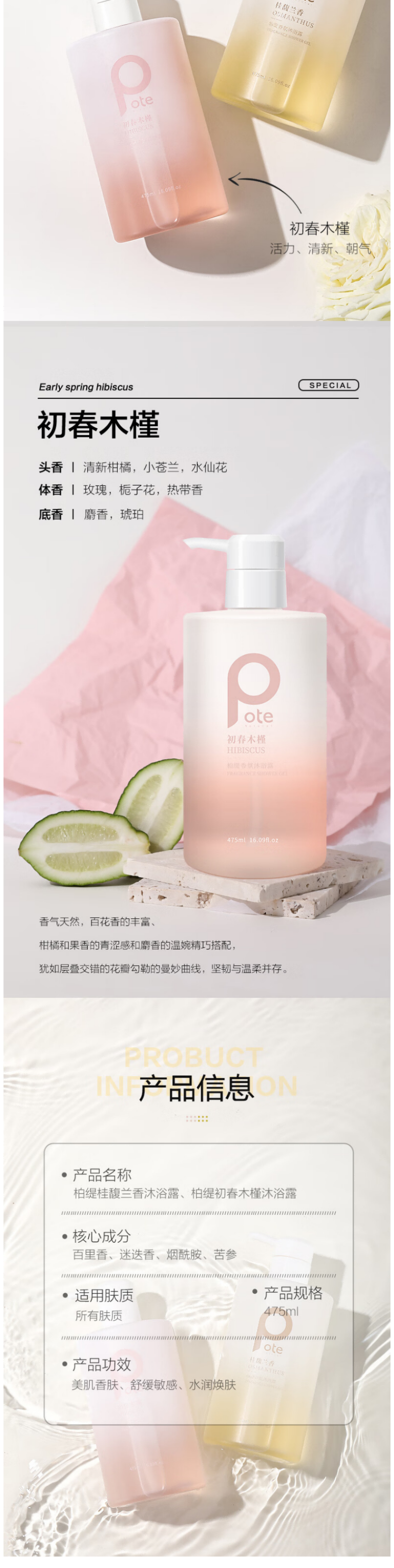 柏缇初春木槿香氛沐浴露 475ML