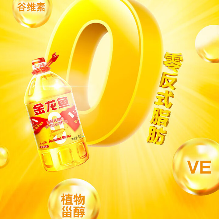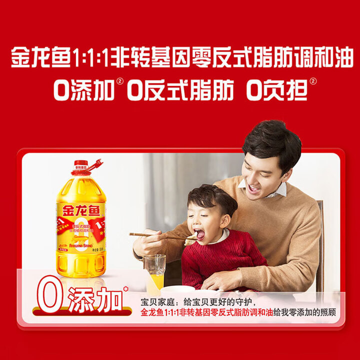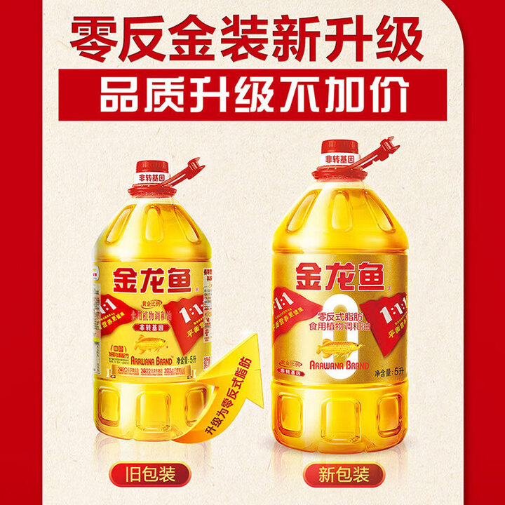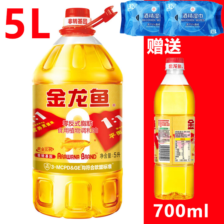 金龙鱼黄金比例零反式脂肪食用植物调和油5L/瓶+赠送700ml+三奇酒精湿纸巾30片*2