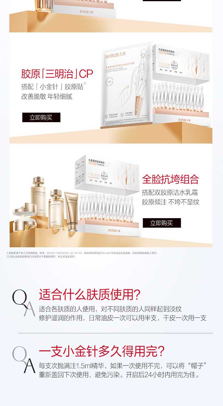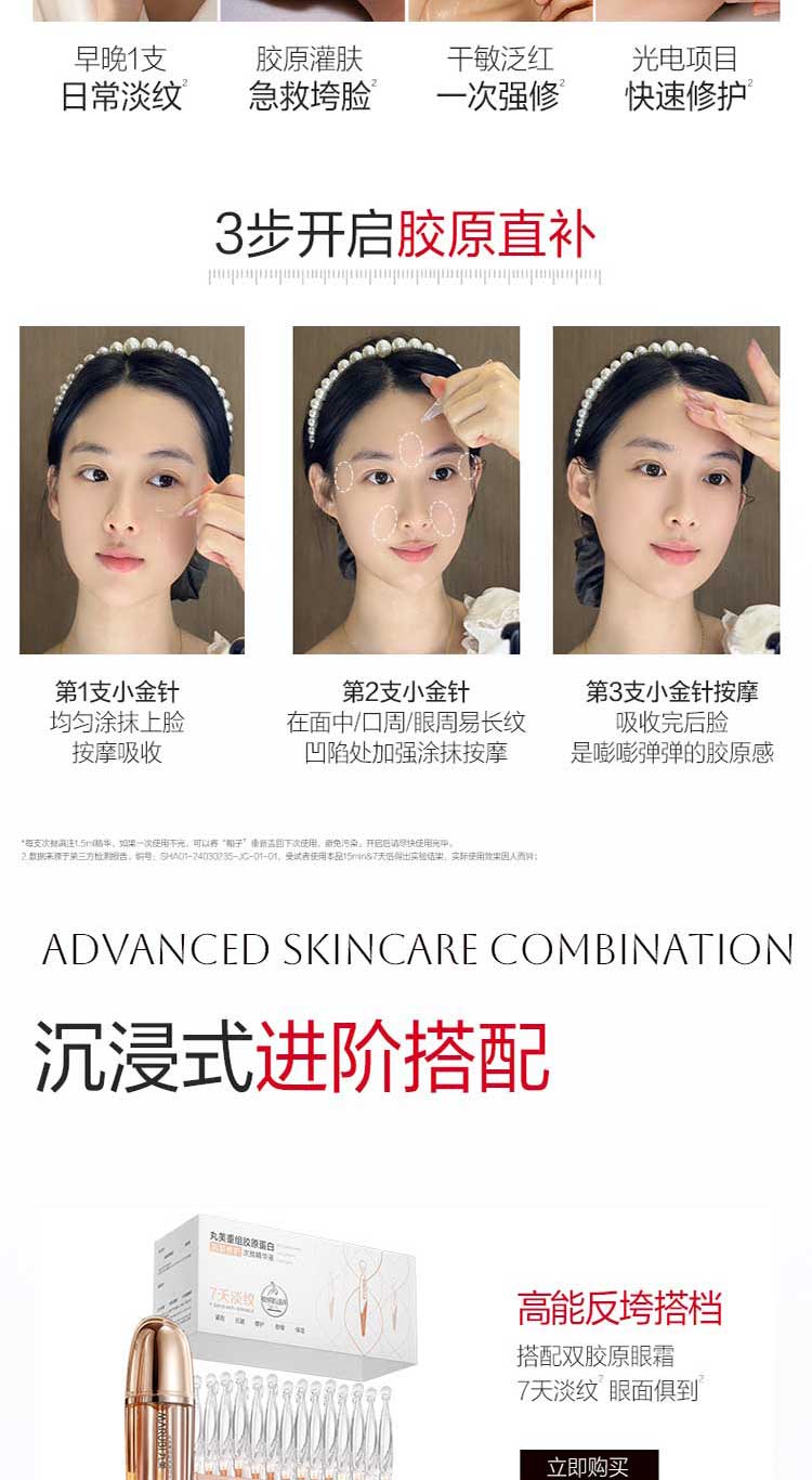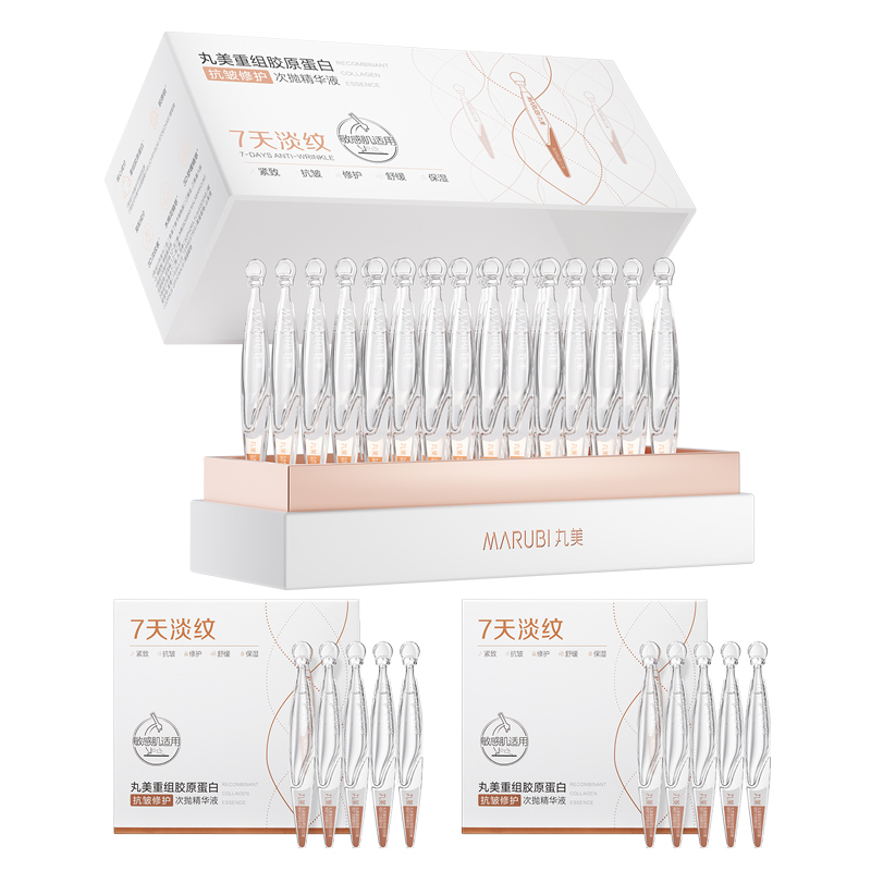 丸美二代胶原小金针面部精华 重组胶原蛋白抗皱次抛30支紧致修护舒缓+赠品(丸美重组胶原蛋白抗皱修护次抛精华液1.5mlx5(电商2.0版)*2)