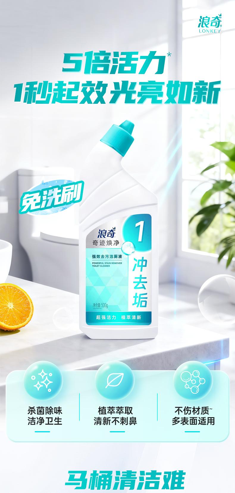 浪奇 奇迹焕净 强效去污洁厕液500g*2瓶