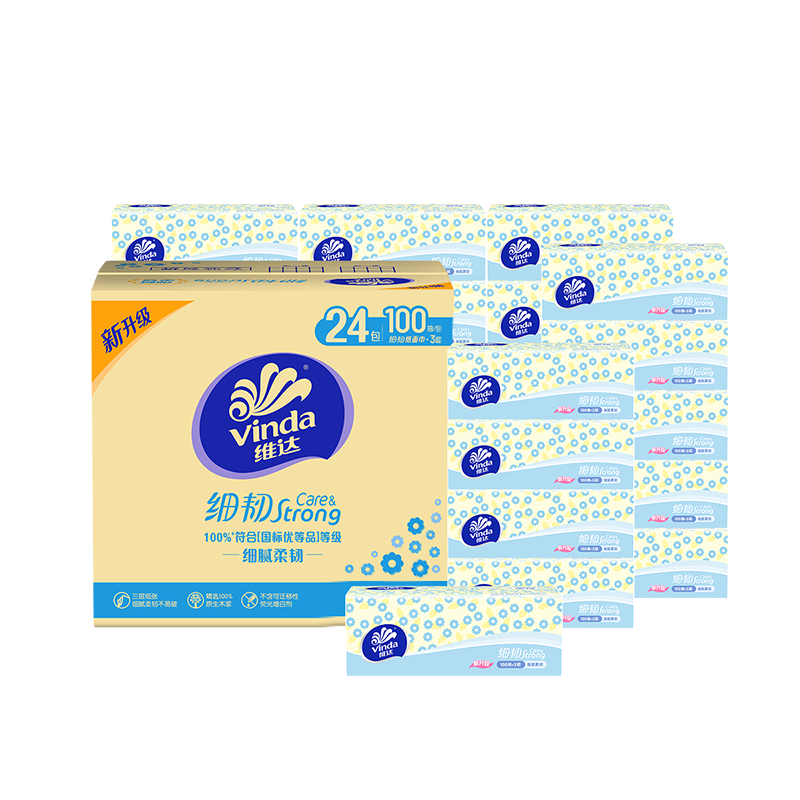 V2607 维达100抽3层XS码细韧抽纸(1×24)装/箱 1箱