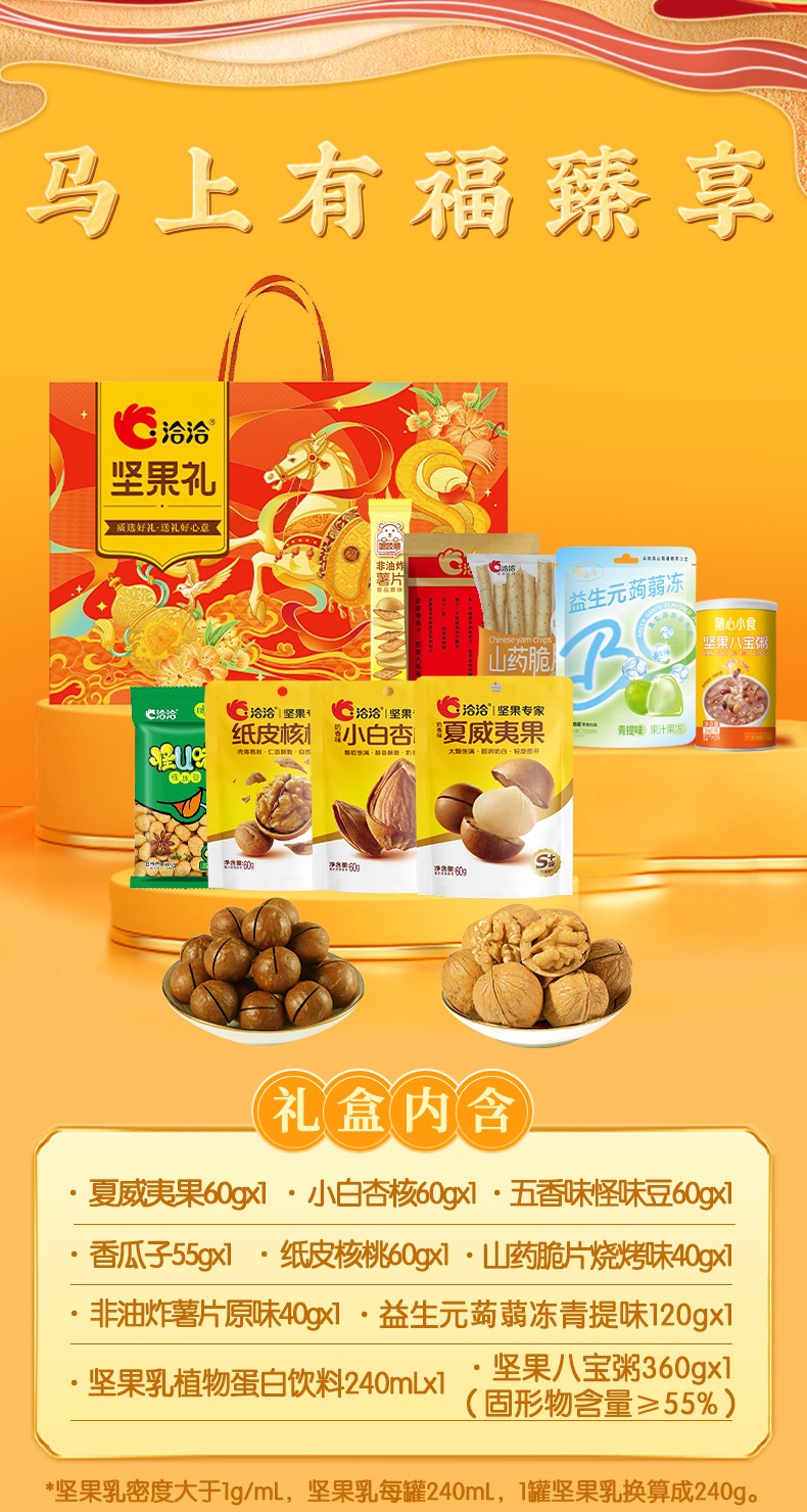食品饮品>休闲零食>坚果炒货>坚果礼盒> 洽洽马上有福臻享礼盒1135g