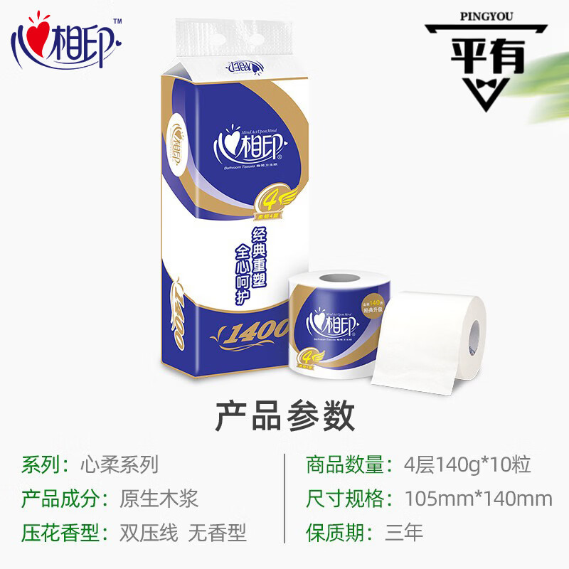 BT910 心相印140克10粒装四层卷筒卫生纸