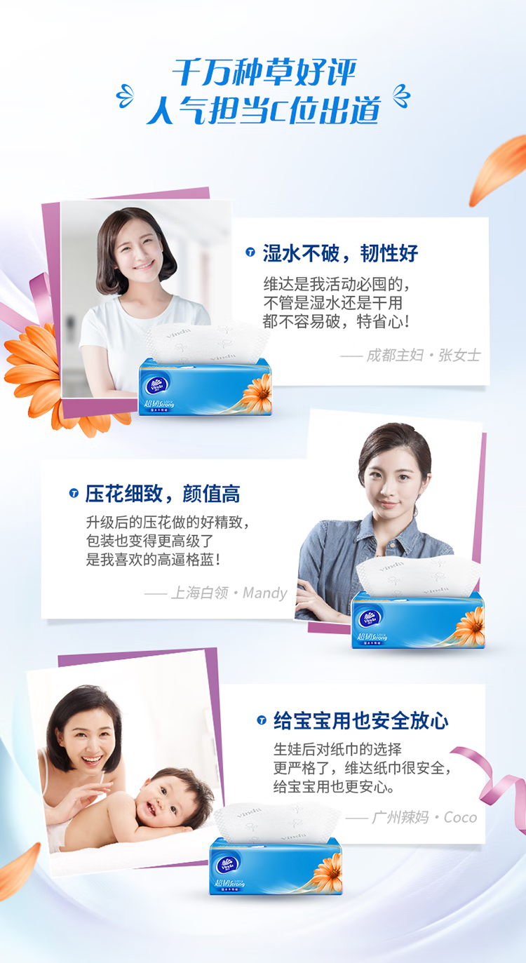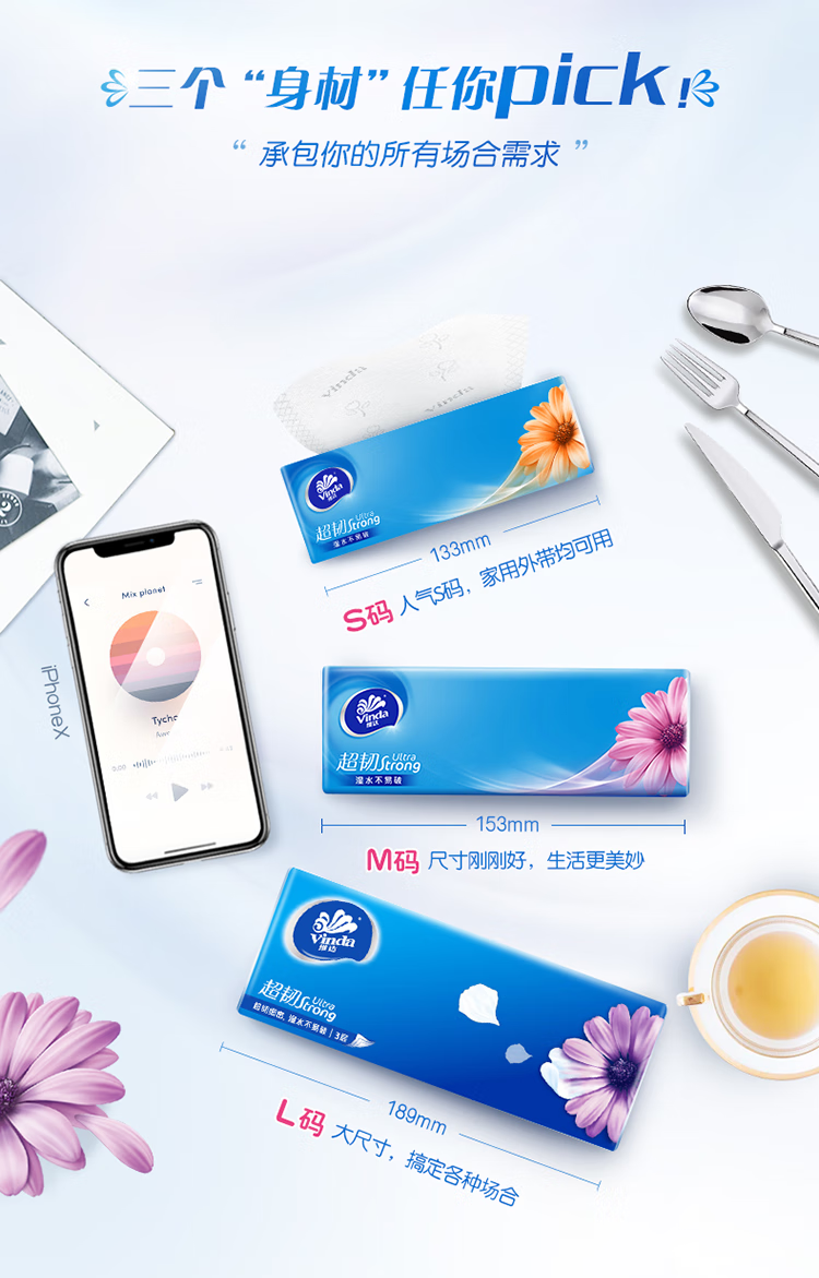 维达V2287-B超韧S码抽纸3层100抽24包/箱