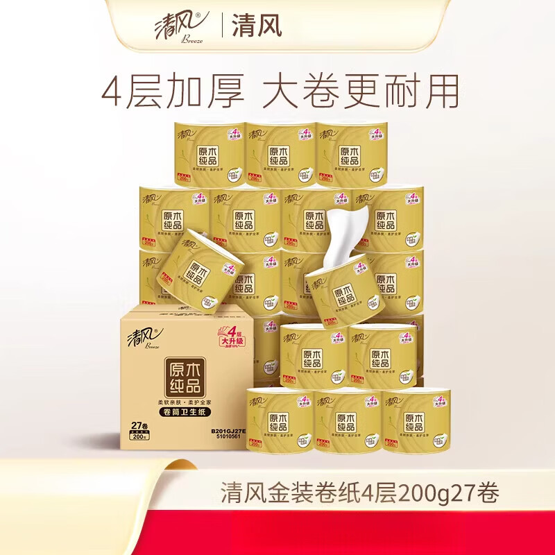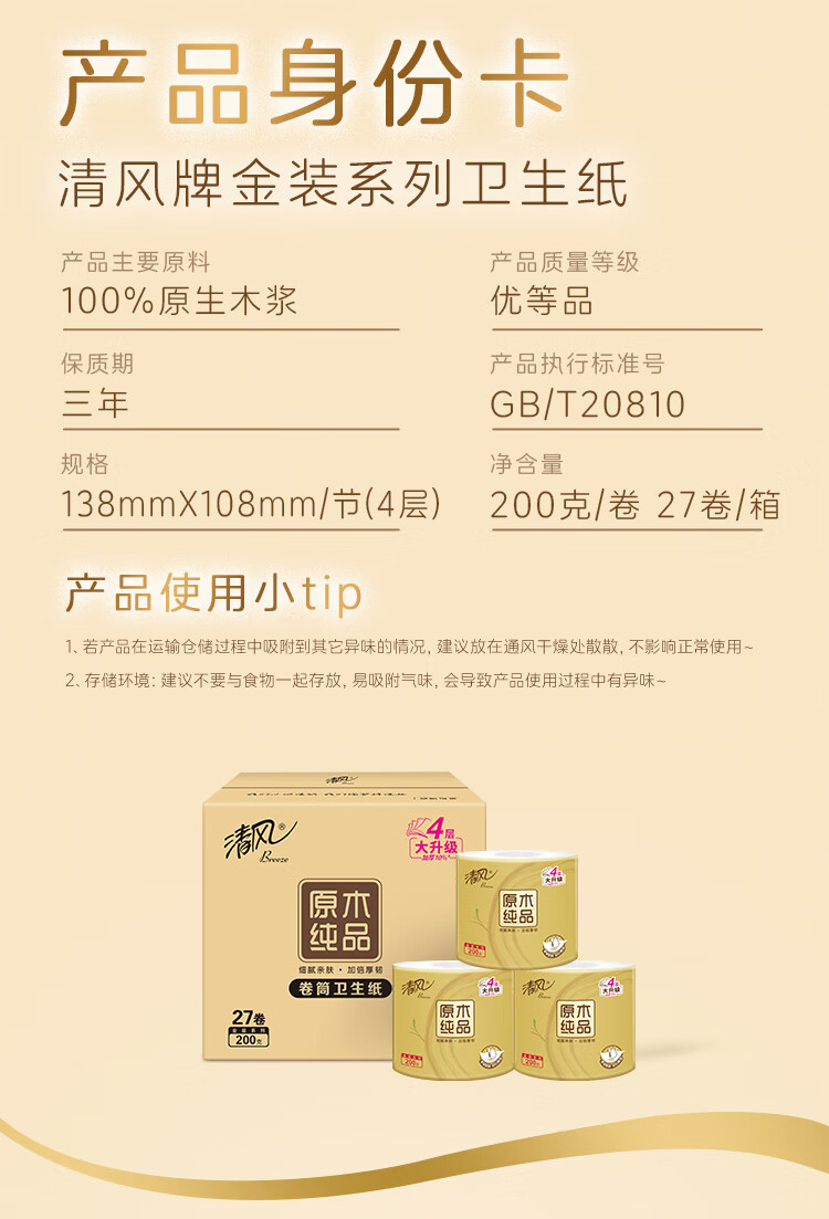 日用百货>居家日用>纸品纸巾> 清风AR44ZSY3原木金装抽纸3层120抽24包/箱
