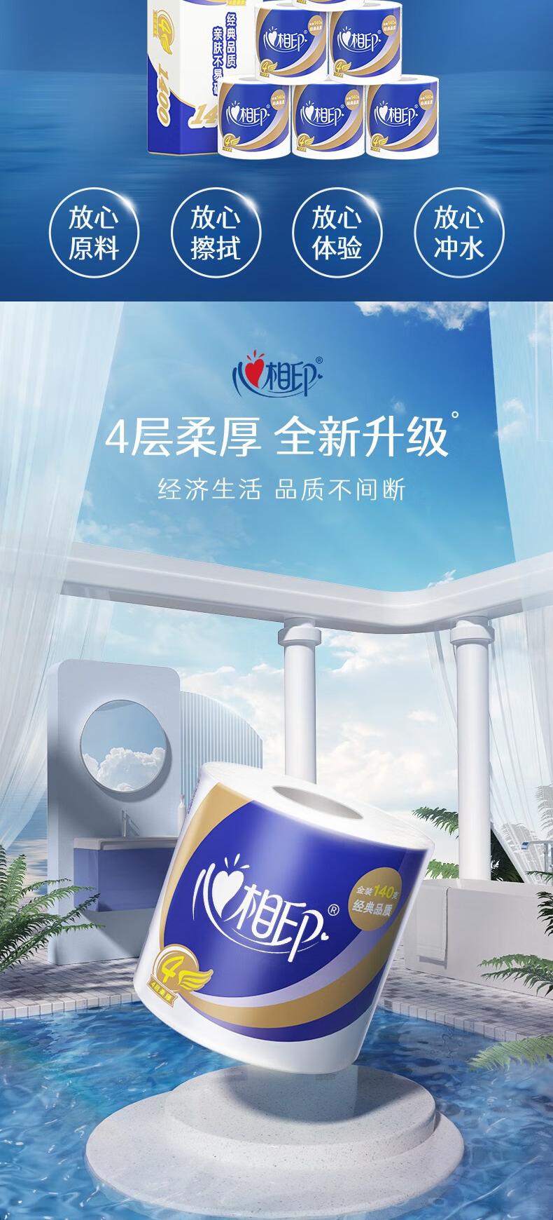 BT910(箱装) 心相印140克27粒装四层卷筒卫生纸(四层)