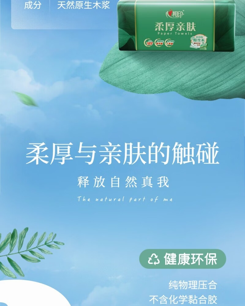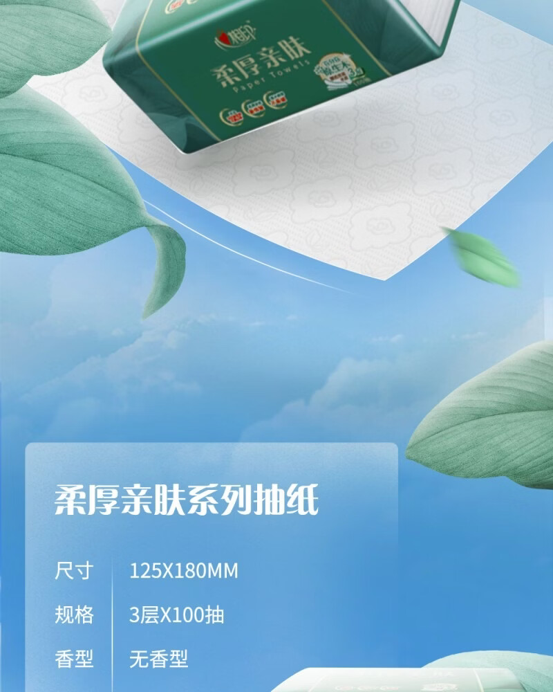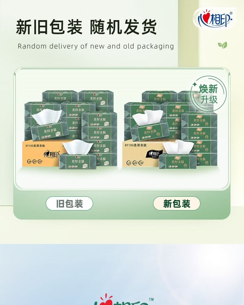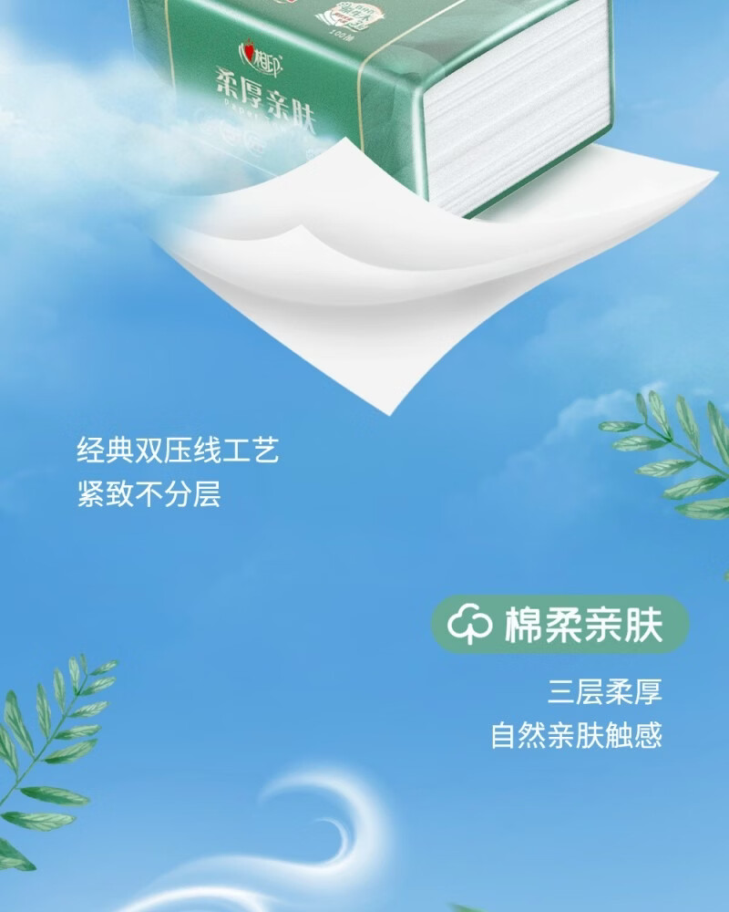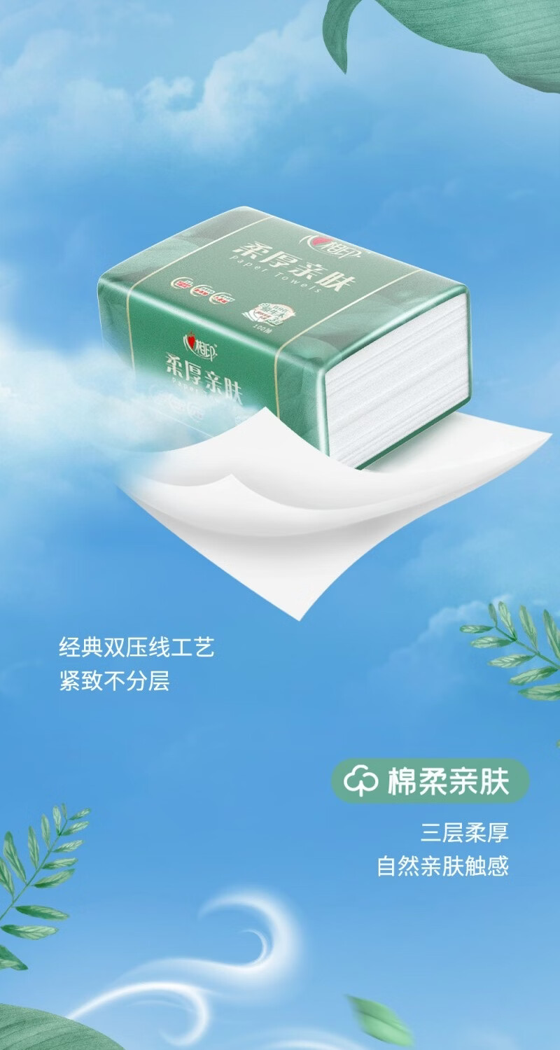 心相印 DT100柔厚亲肤三层塑装纸面巾(特通平台)(18包)