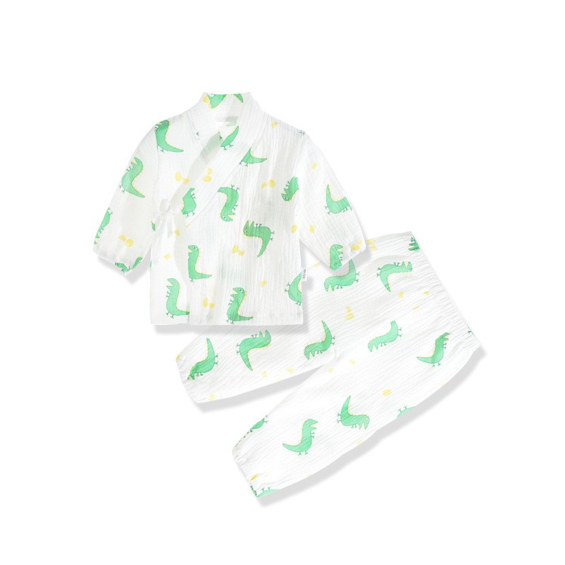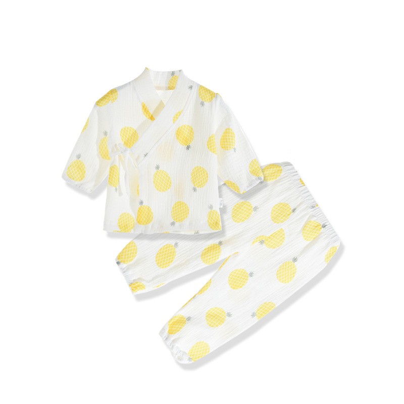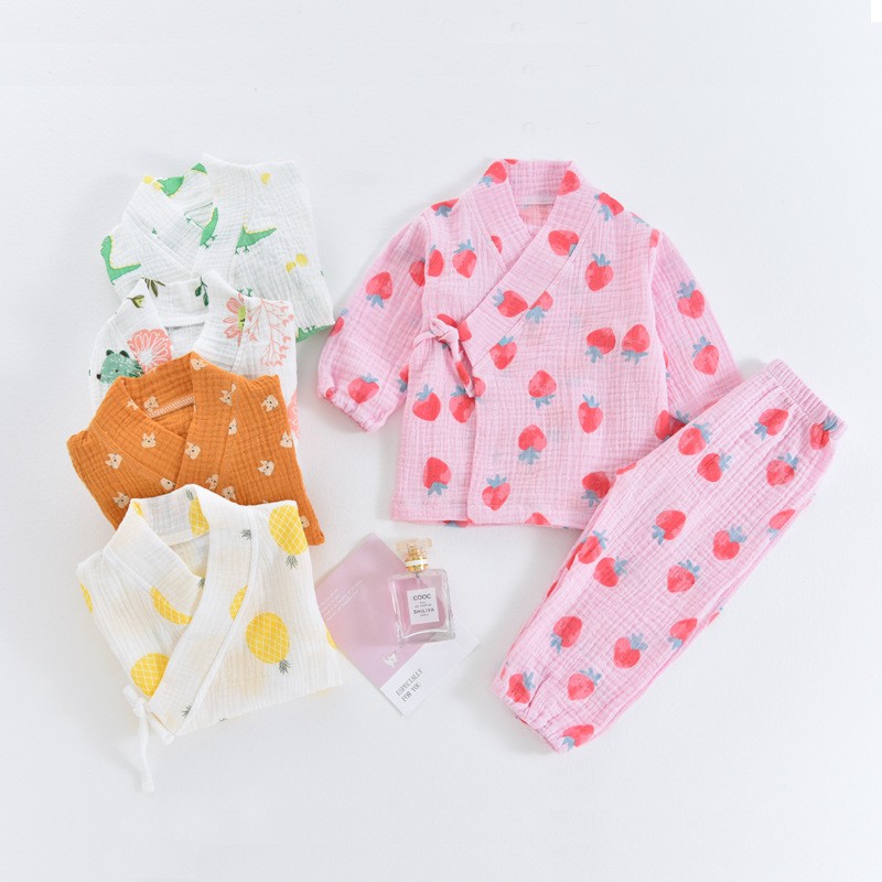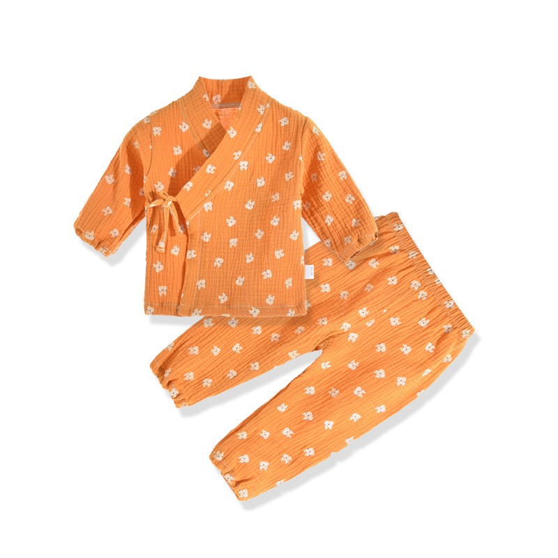 Honeyson宝宝夏季套装纯棉韩版洋气女男童开襟纱布薄款睡衣婴儿粉色防蚊裤A034(A032)