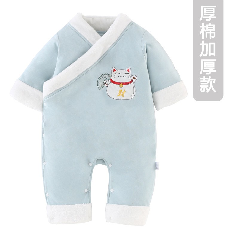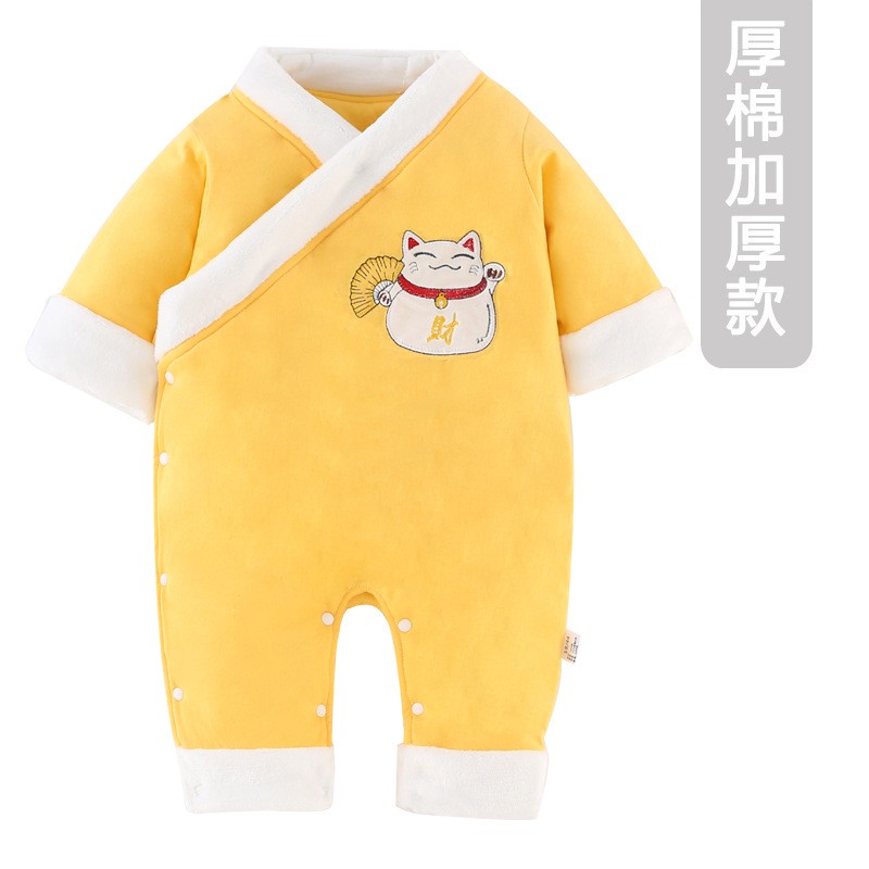 Honeyson宝宝冬装连体衣秋冬套装加厚外出衣服外穿抱衣可爱超萌婴儿拜年服A038