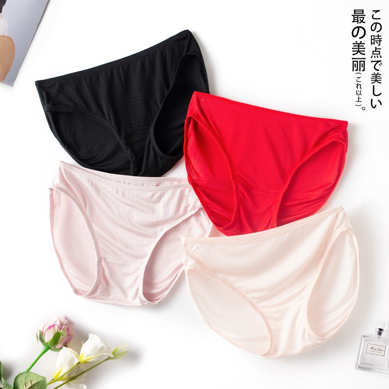 Lomen.DN夏季新款桑蚕丝内裤女低腰100%真丝短裤舒适透气三角裤纯色 LWXSP01