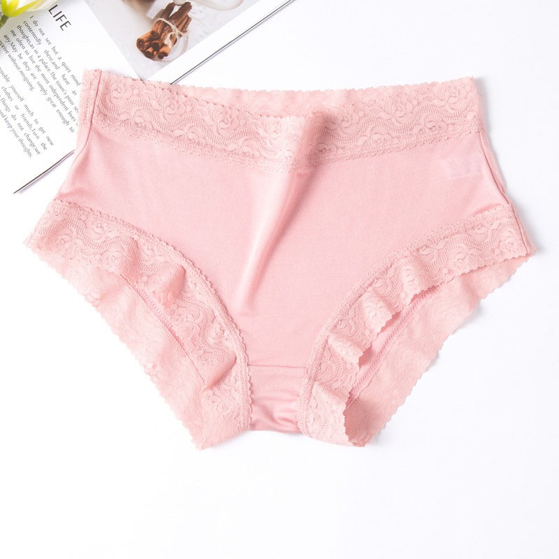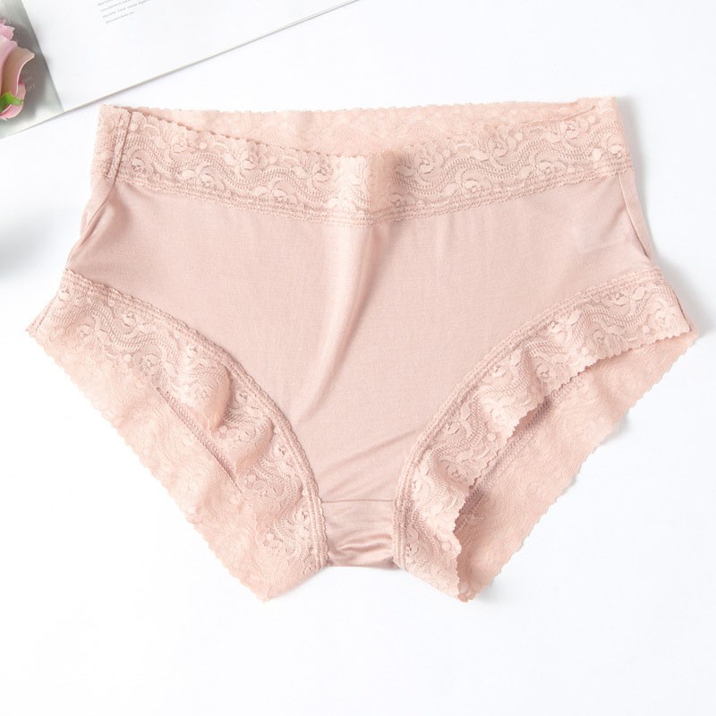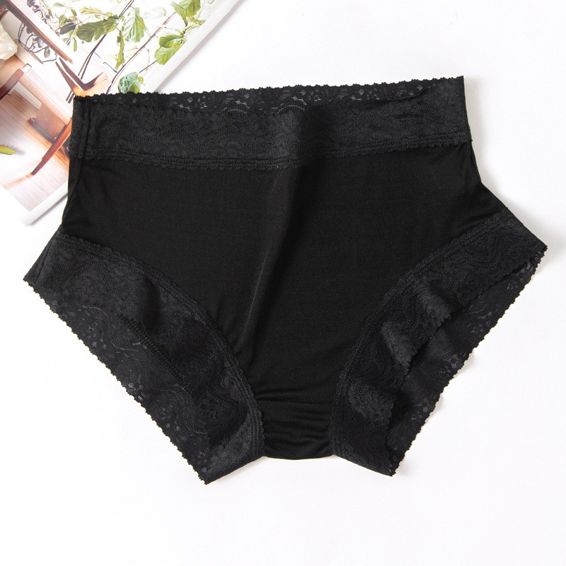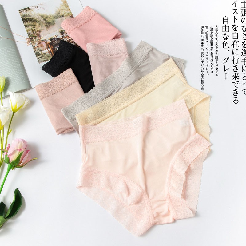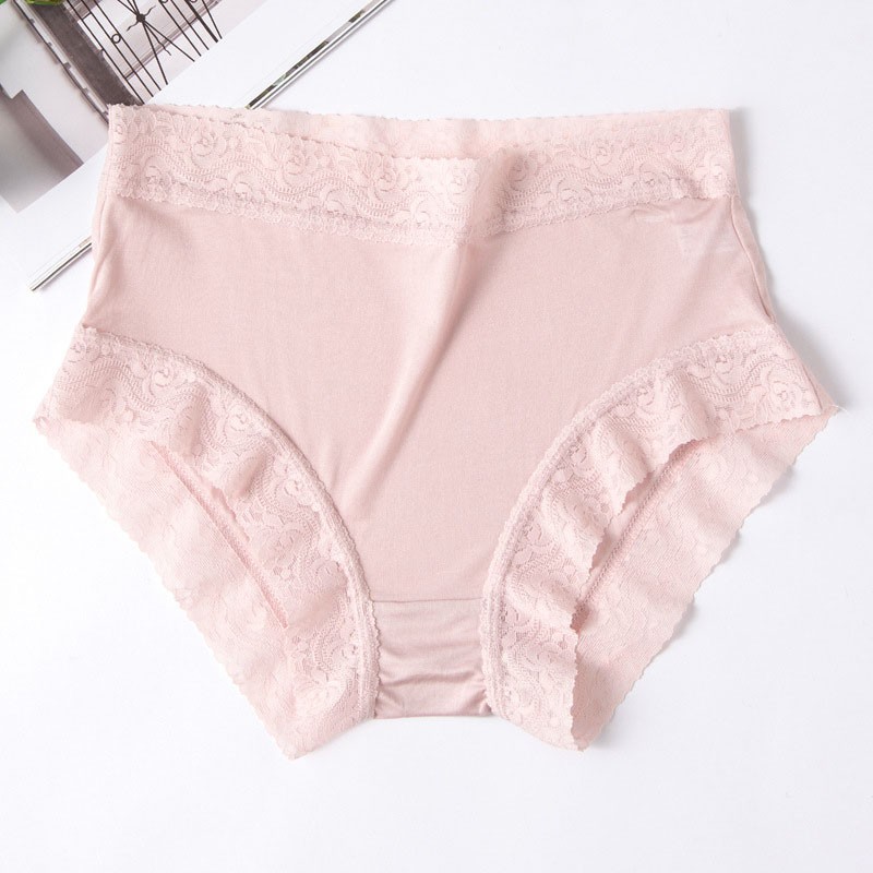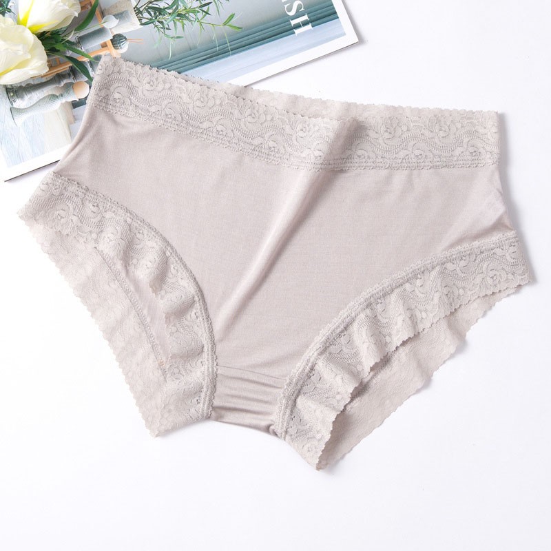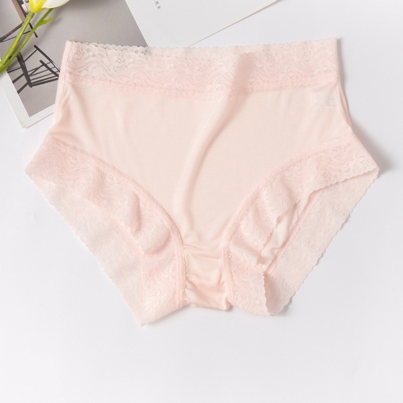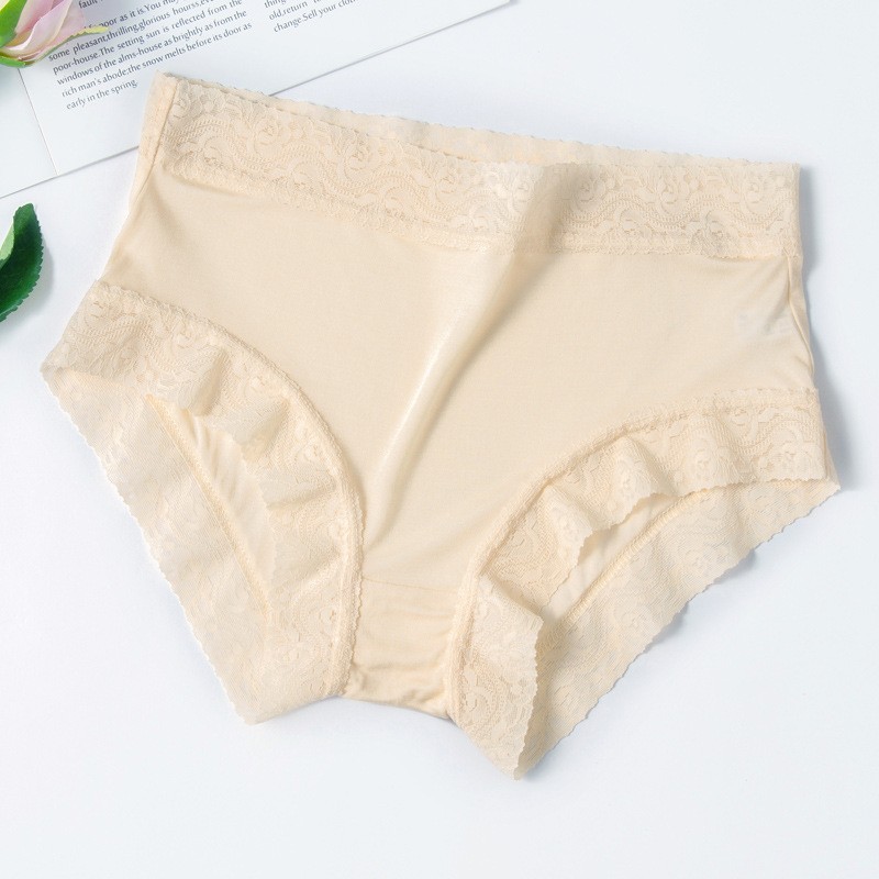 Lomen.DN春夏新款100%真丝内裤女中腰桑蚕丝蕾丝边三角裤短裤无痕透气 LWXP03