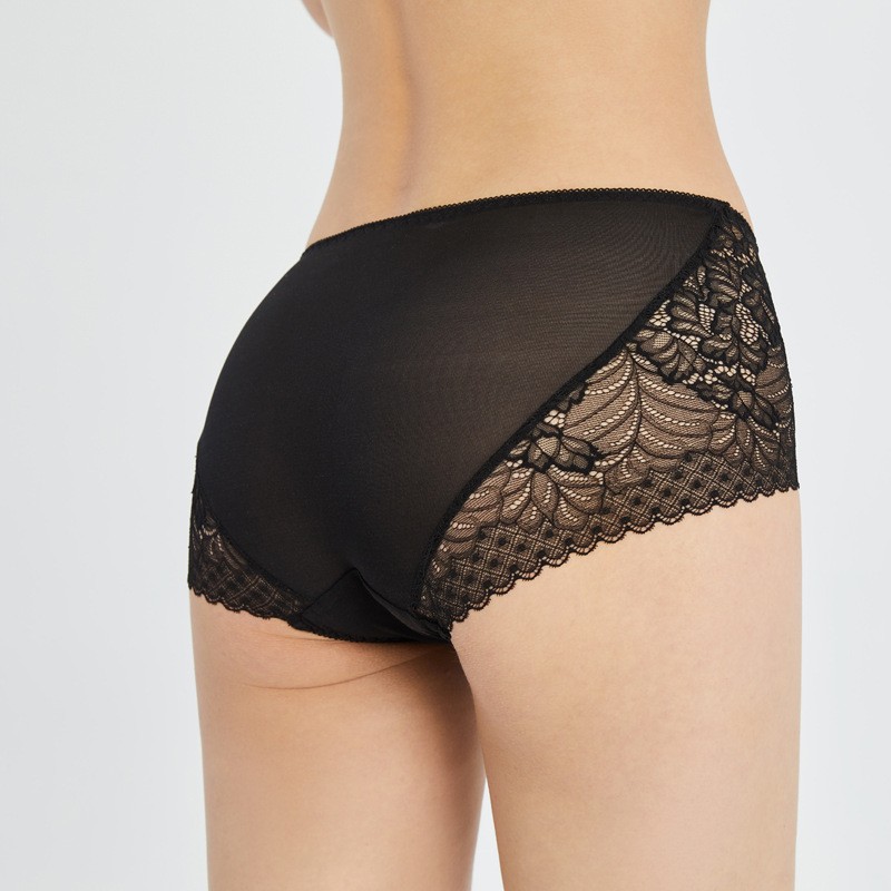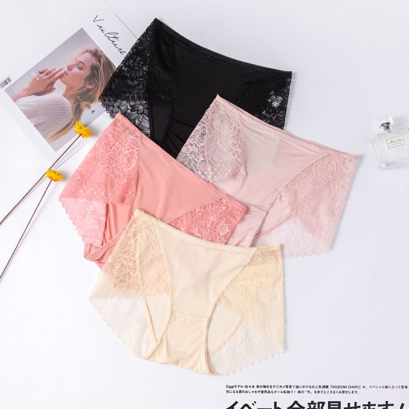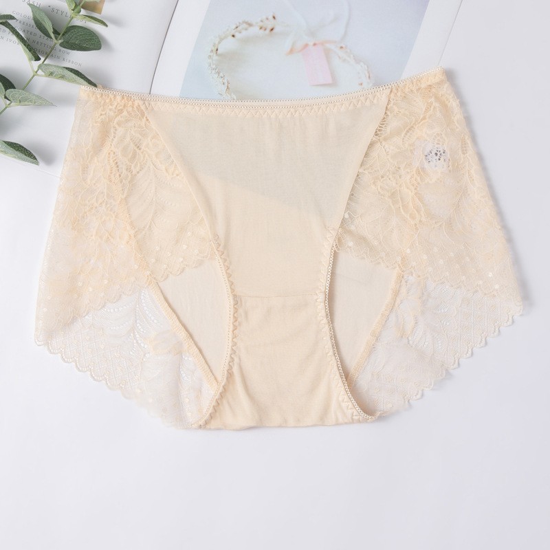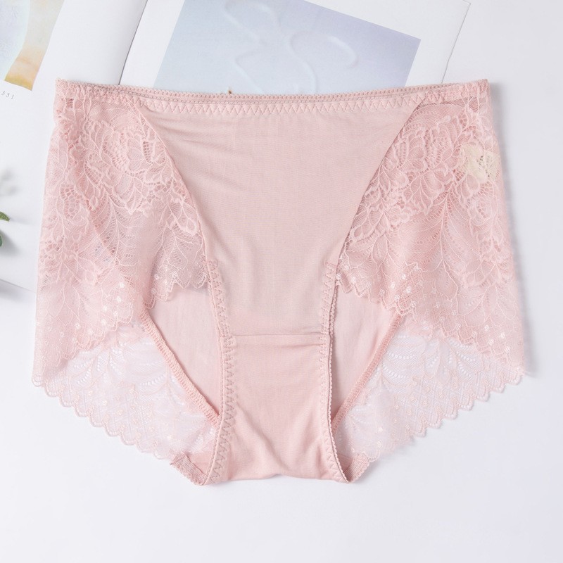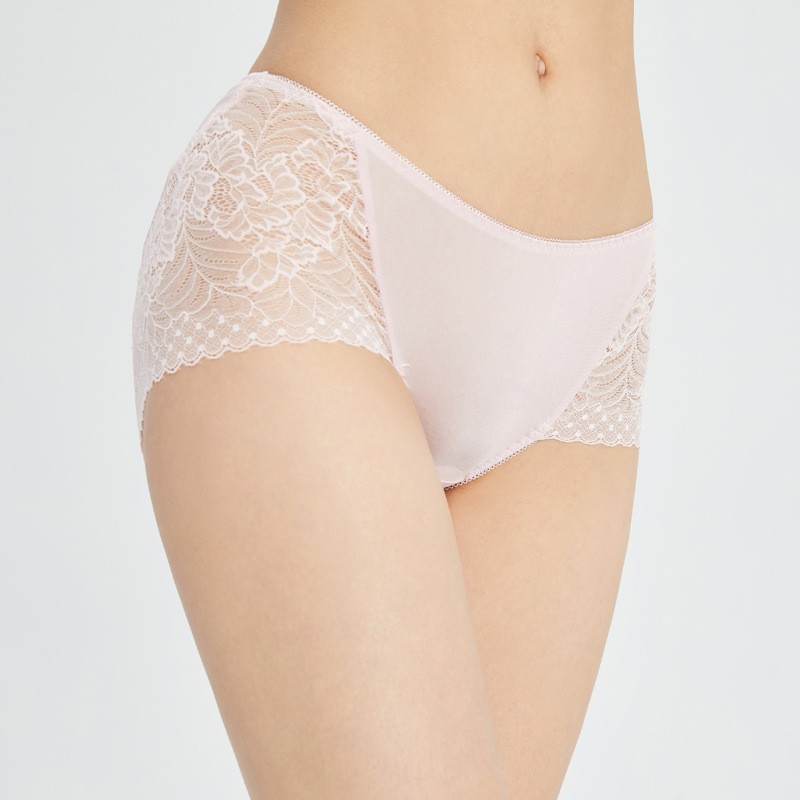 Lomen.DN春夏新款真丝蕾丝边内裤女 100%桑蚕丝性感无痕中腰三角短裤 LWXP008