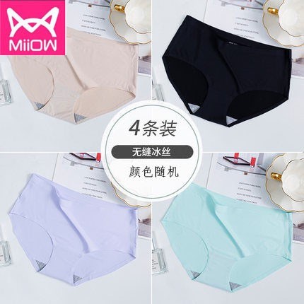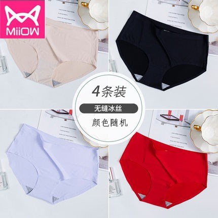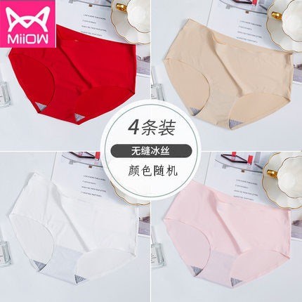 MiiOW/猫人品牌中腰性感无痕抗菌纯棉档女士内裤三角裤冰丝内裤 6520