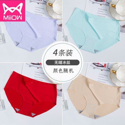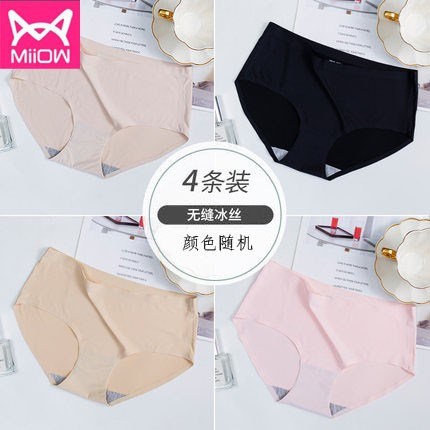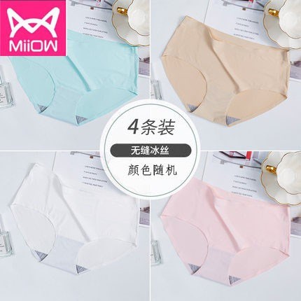 MiiOW/猫人品牌中腰性感无痕抗菌纯棉档女士内裤三角裤冰丝内裤 6520