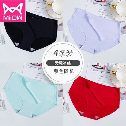 MiiOW/猫人品牌中腰性感无痕抗菌纯棉档女士内裤三角裤冰丝内裤 6520