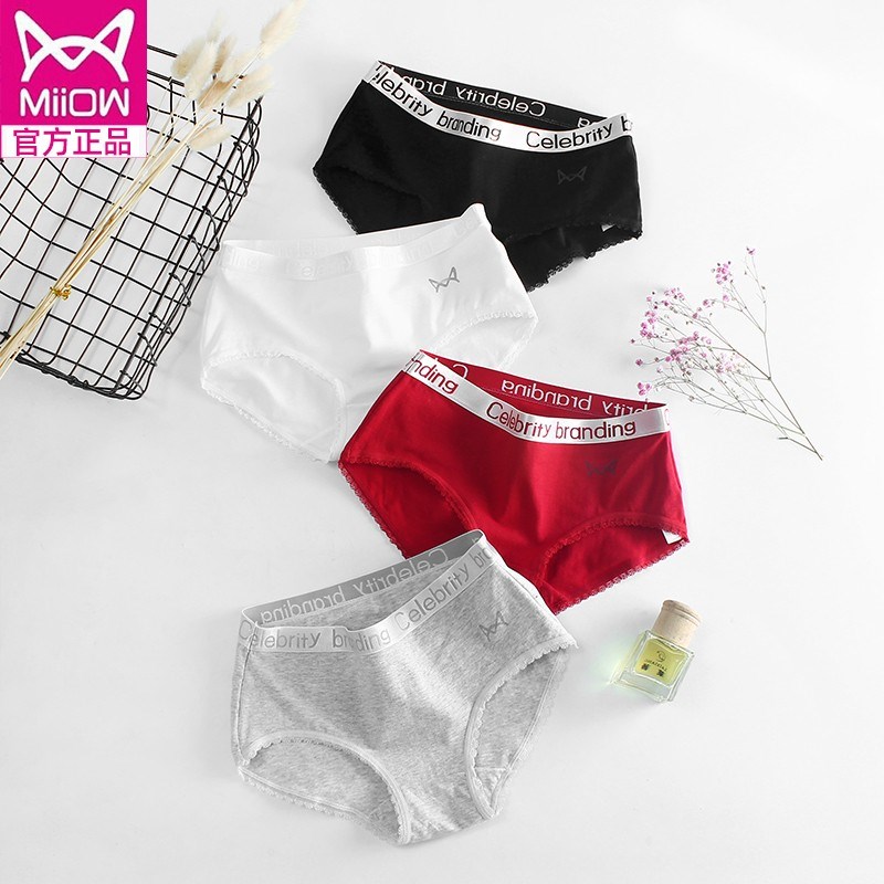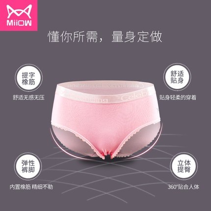 MiiOW/猫人新品无痕抗菌棉款女士内裤4条装性感蕾丝女士三角裤6519