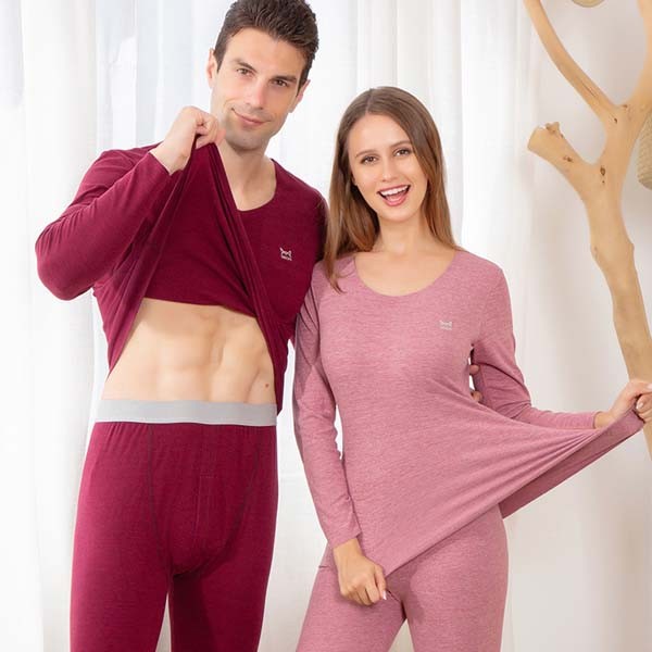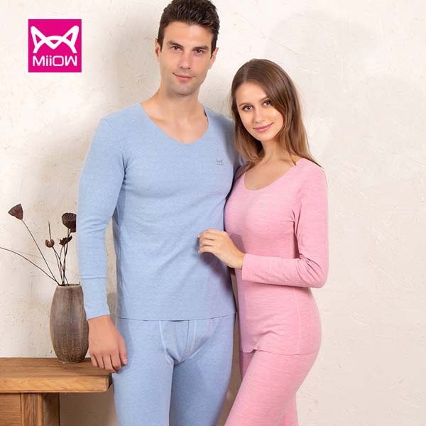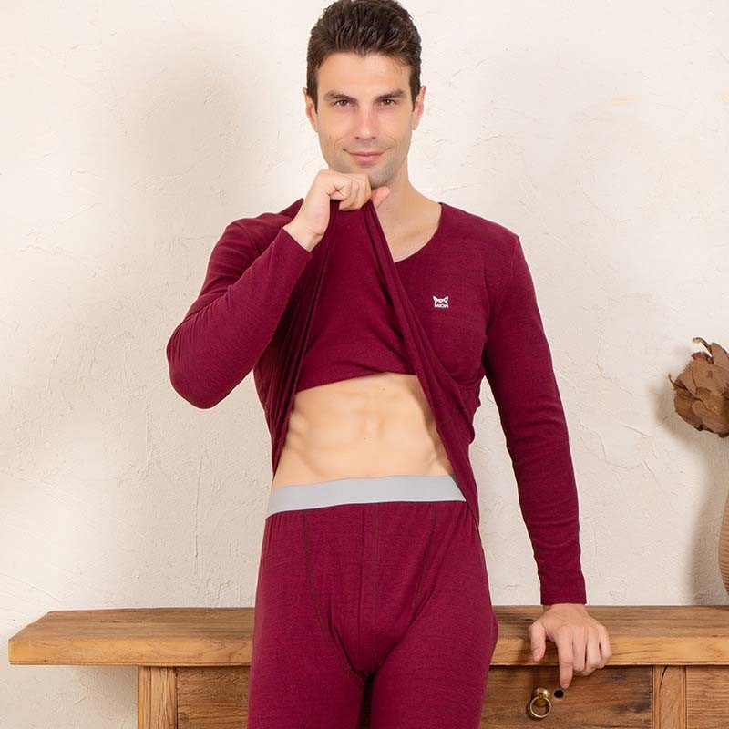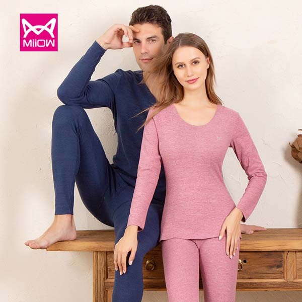 MiiOW/猫人男士双面磨毛德绒阳离子保暖内衣套装280G无痕随心裁30002