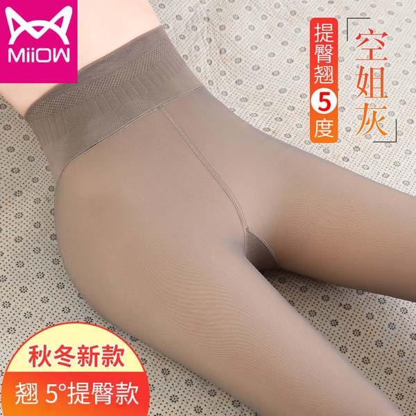 MiiOW/猫人秋冬新款打底裤加绒加厚外穿一体裤高腰保暖裤透肤踩脚MOD1901