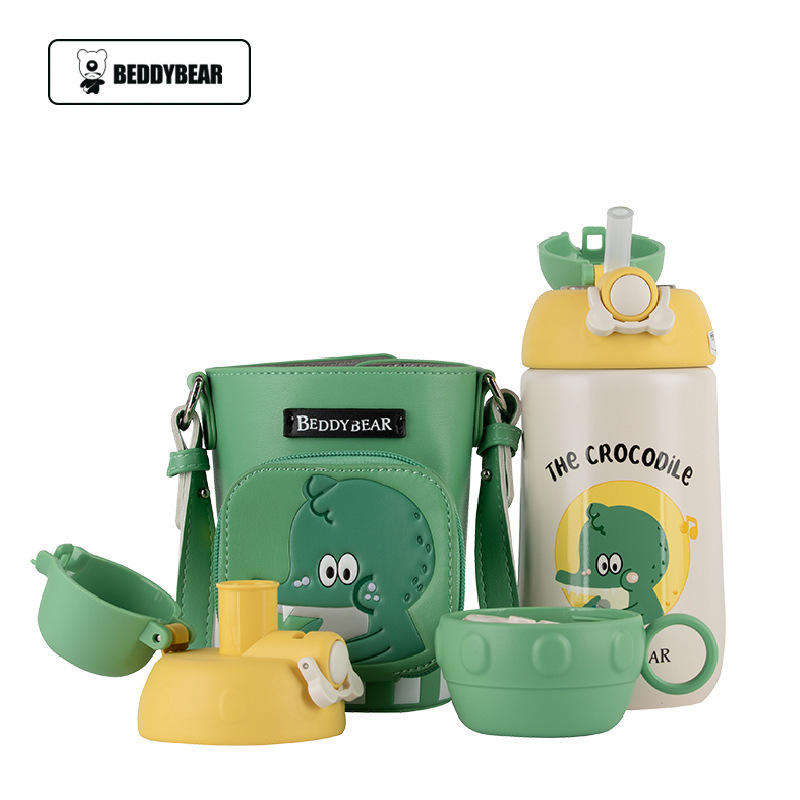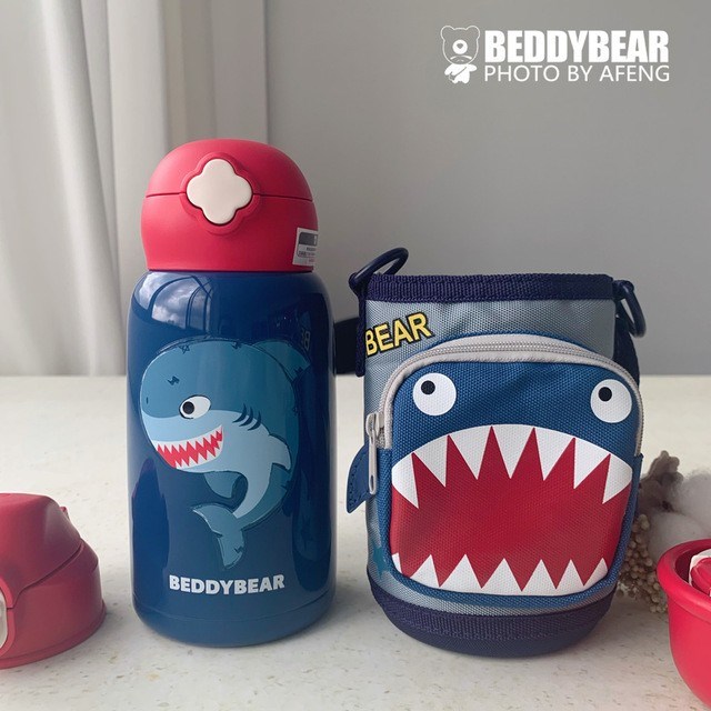韩国杯具熊口袋儿童保温杯带吸管宝宝水杯两用幼儿园婴儿小学生水壶