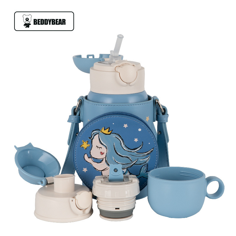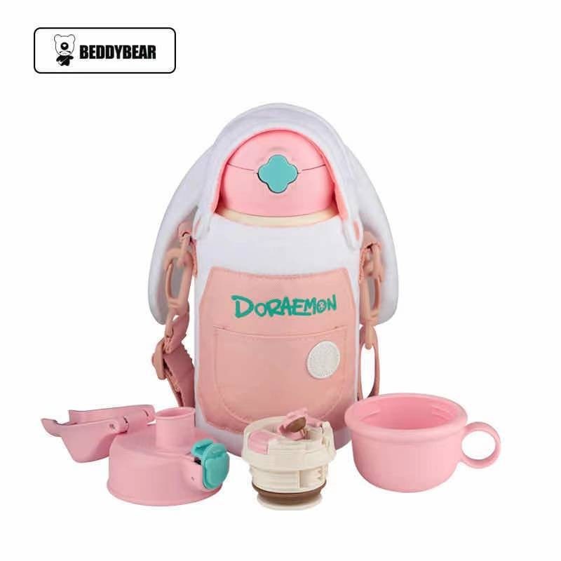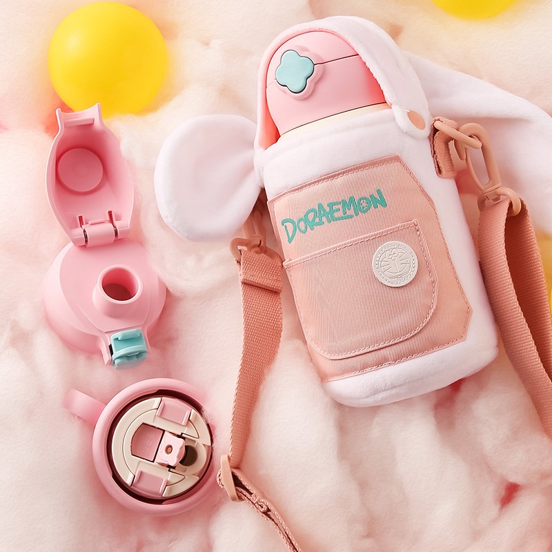 韩国杯具熊儿童保温杯可爱斜跨毛绒兔子吸管杯宝宝带杯套学生少女水杯