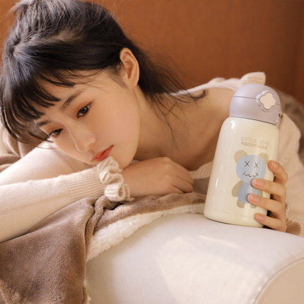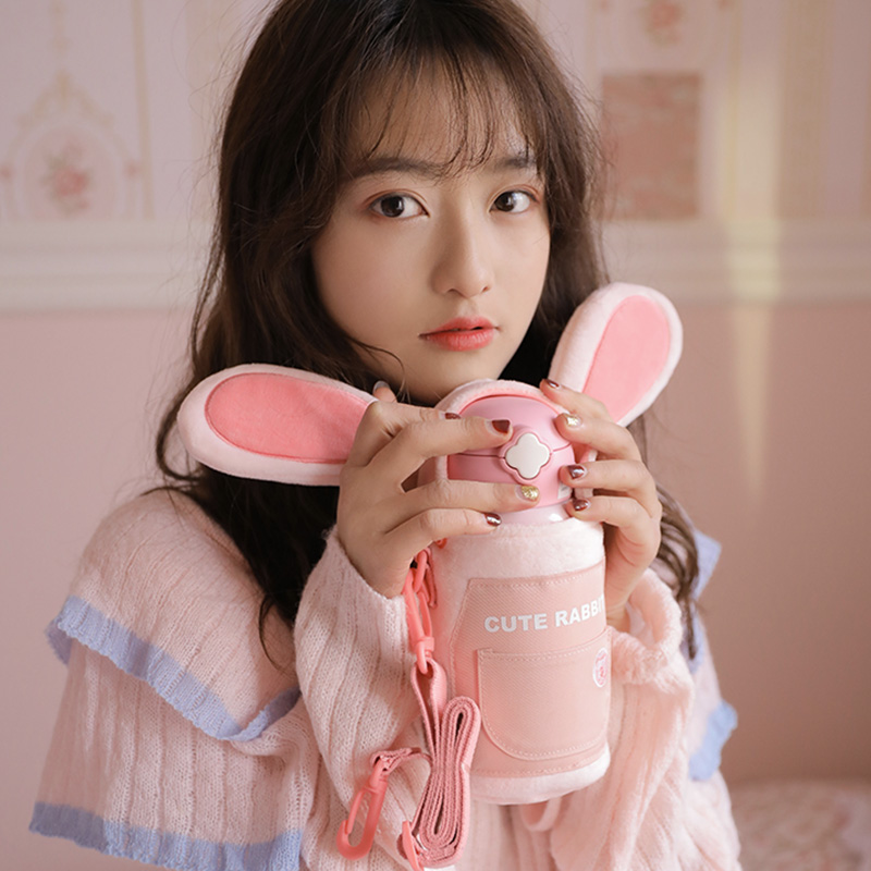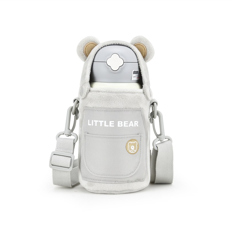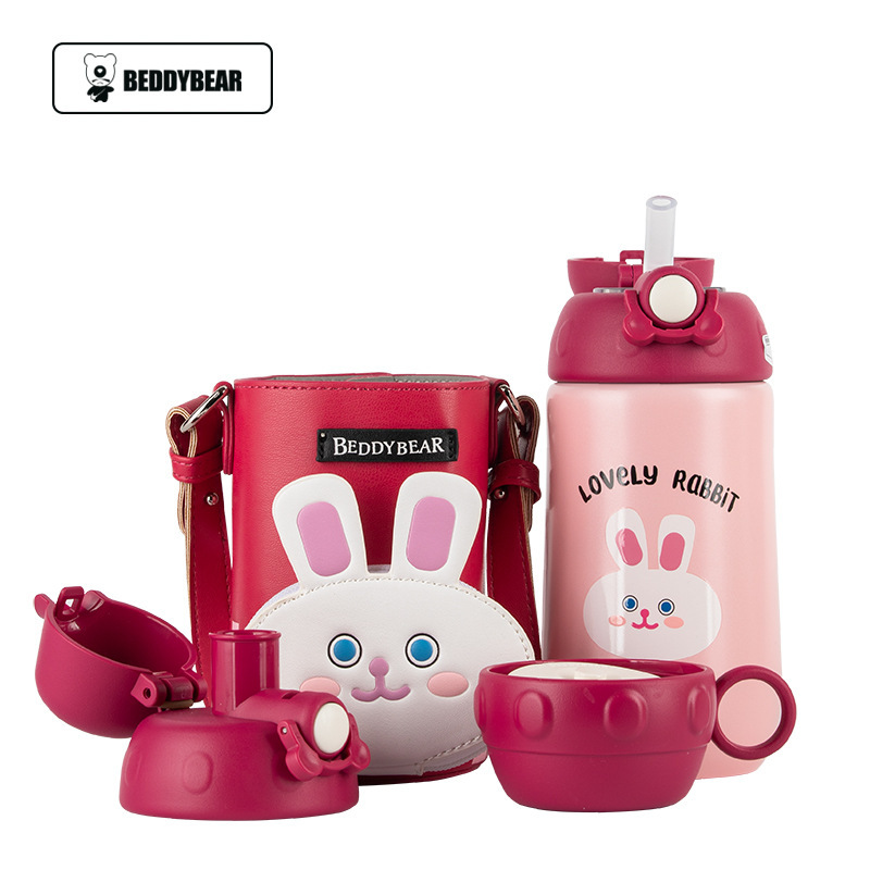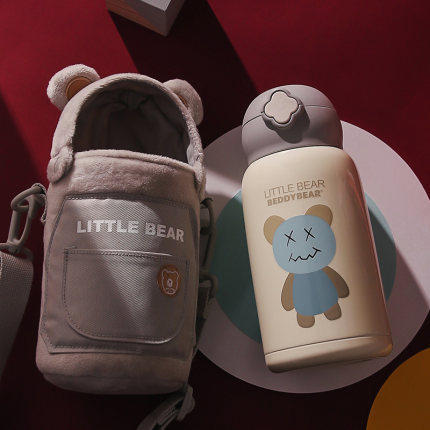 杯具熊儿童保温杯可爱斜跨毛绒兔子吸管杯宝宝带杯套学生少女水杯