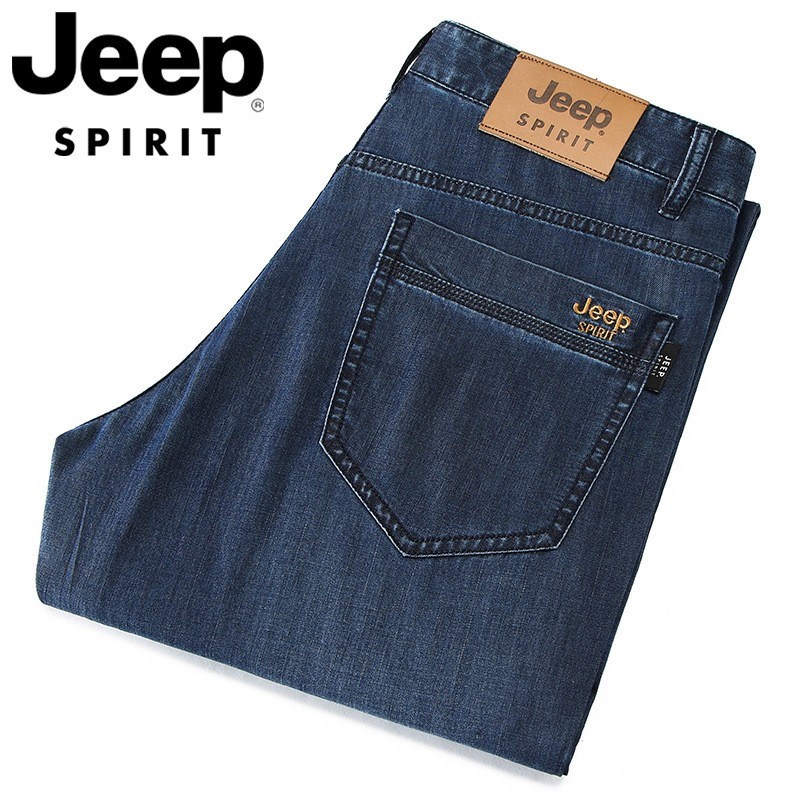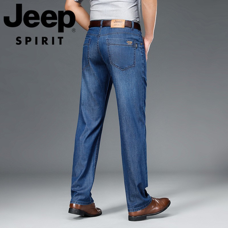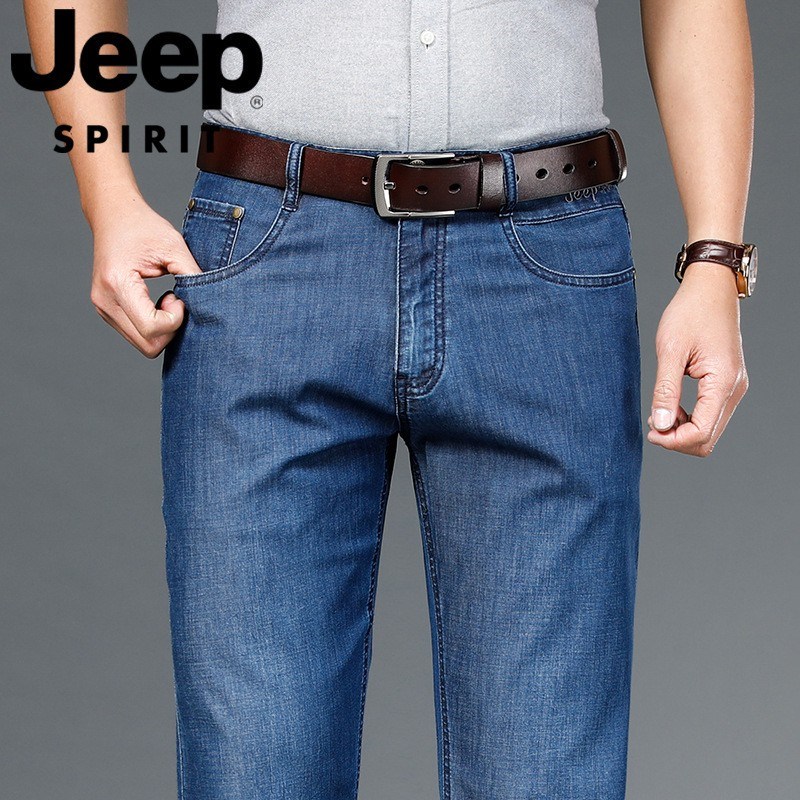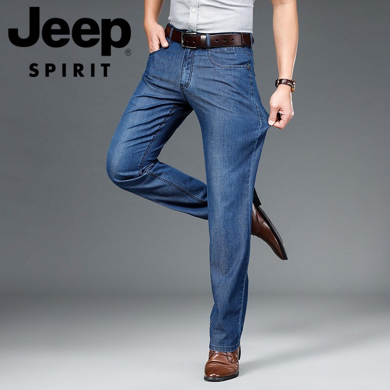 JEEP SPIRIT夏季直筒牛仔裤男宽松商务休闲水洗蓝色棉微弹中腰薄裤J723