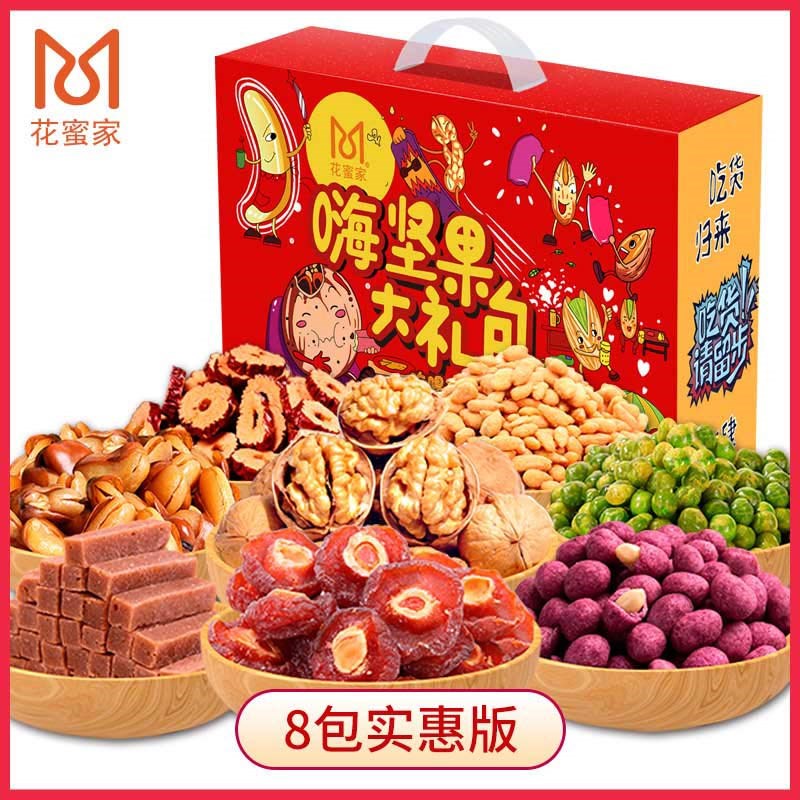 花蜜家实惠款嗨坚果大礼包 年货坚果礼盒零食大礼包送礼团购 864克/盒