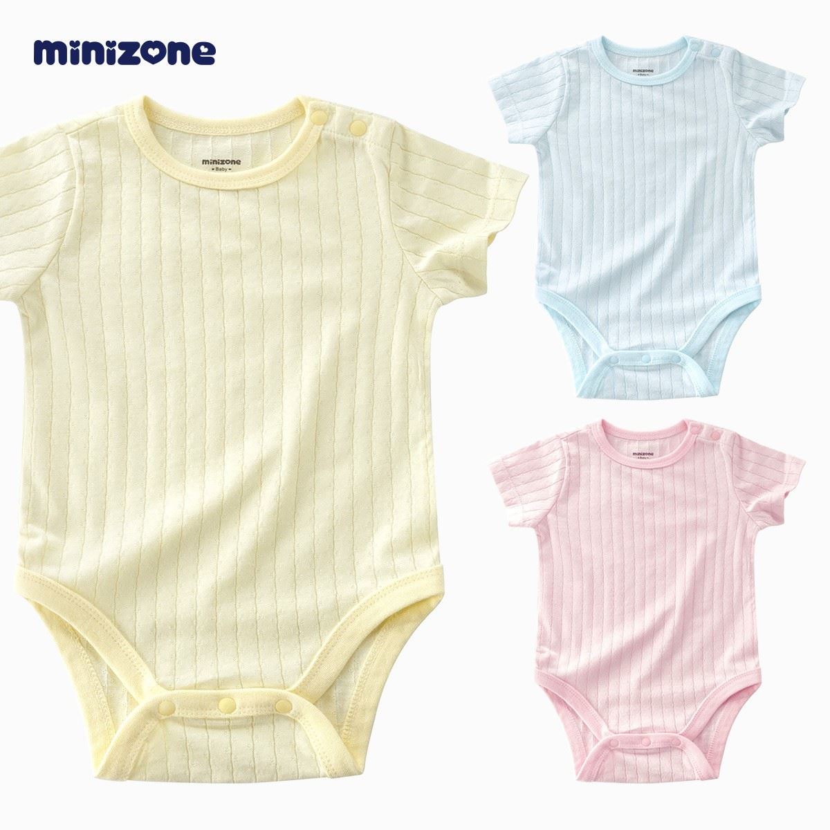 minizone婴儿短袖三角哈衣男女宝宝连体衣夏新生儿纯棉包屁衣薄H1011