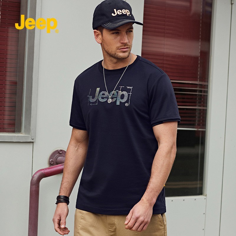 JEEP 夏季宽松型不连帽字母圆领休闲薄款T恤P212MKT029
