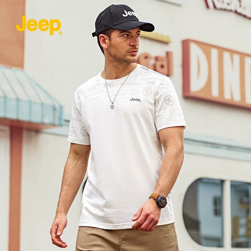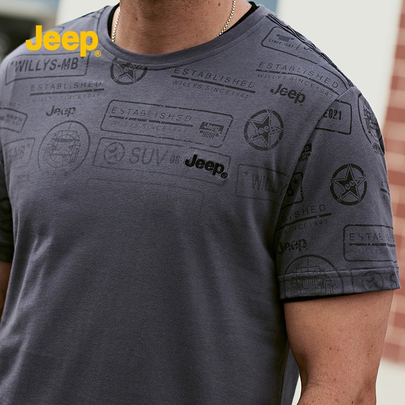JEEP 夏季圆领棉宽松型纯色日常薄款T短袖恤P212MKT046
