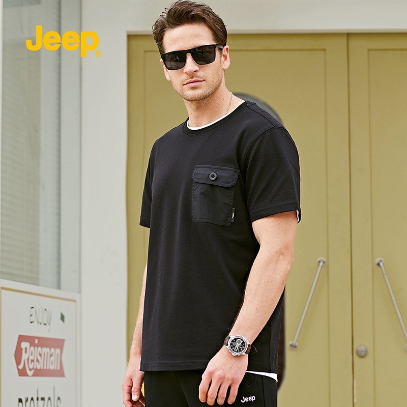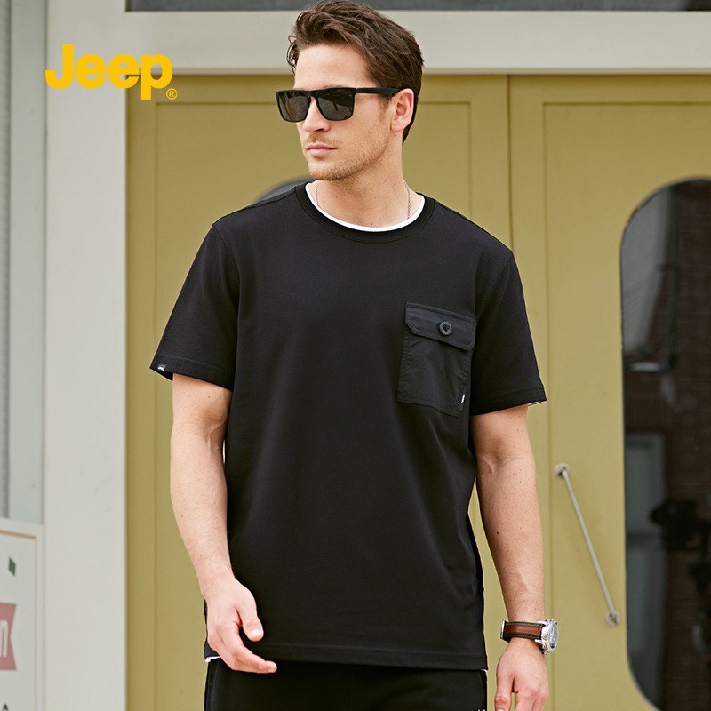JEEP 男装纯色不连帽宽松型大码薄款黑色无领棉休闲卫衣P212MKT175
